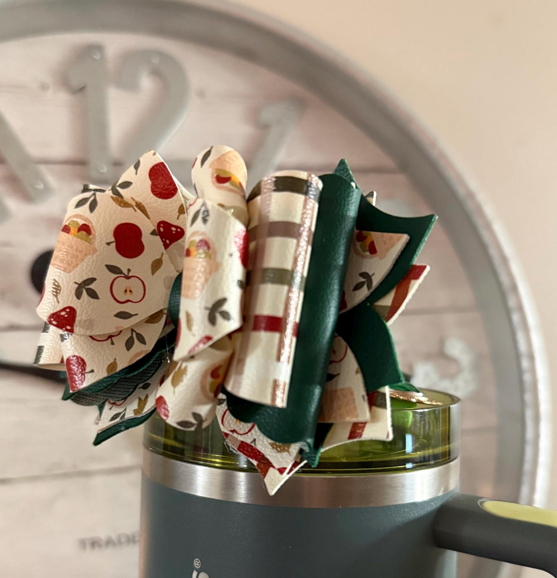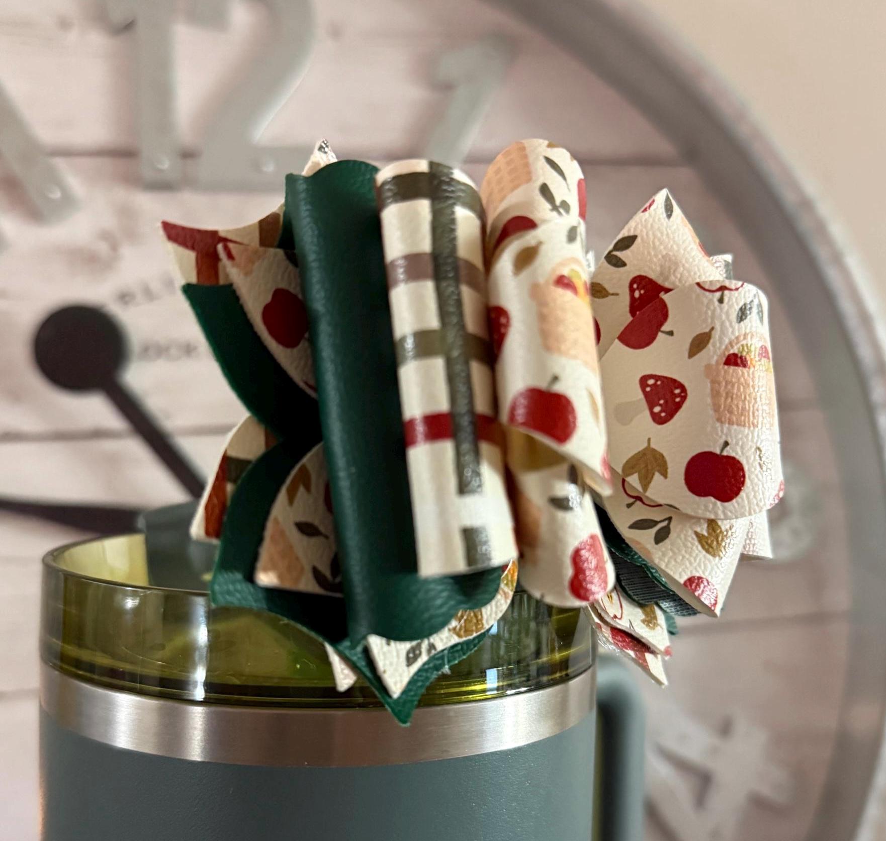 Handmade, 6 layer, fall themed tumbler bow. Acrylic ring attachment fits 10mm straws.