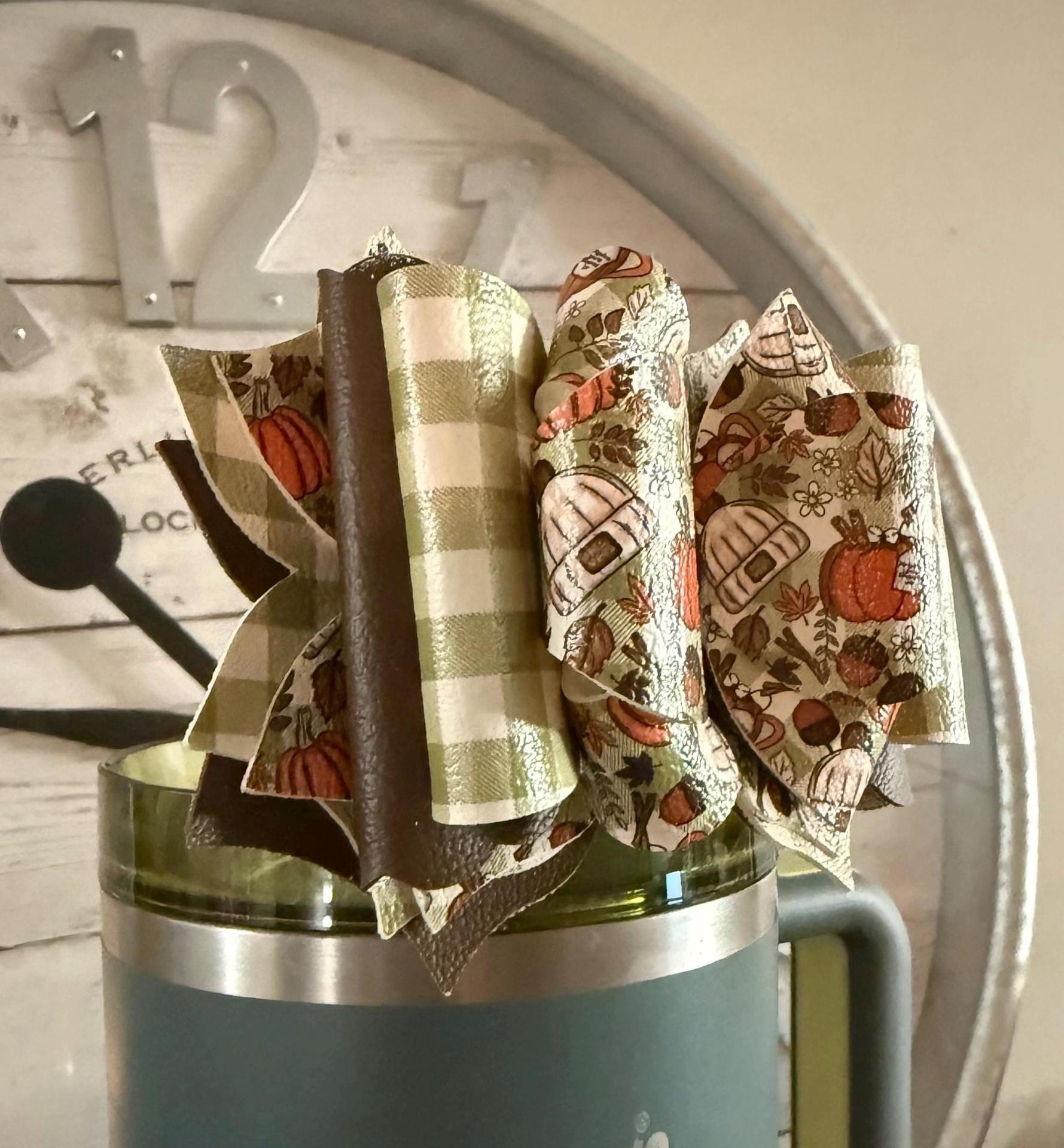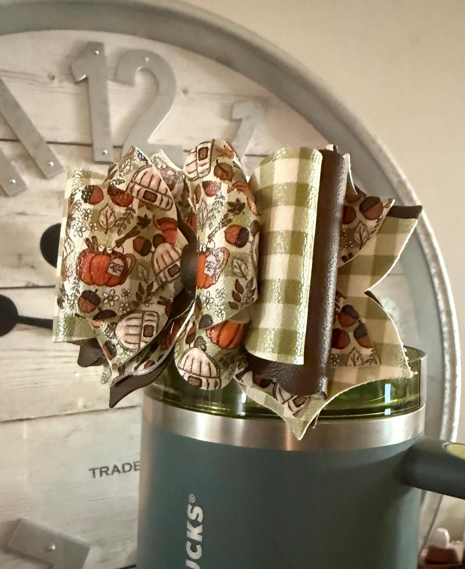 Handmade, 6 layer, fall themed tumbler bow. Acrylic ring attachment fits 10mm straws.