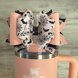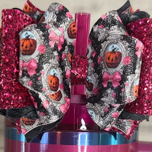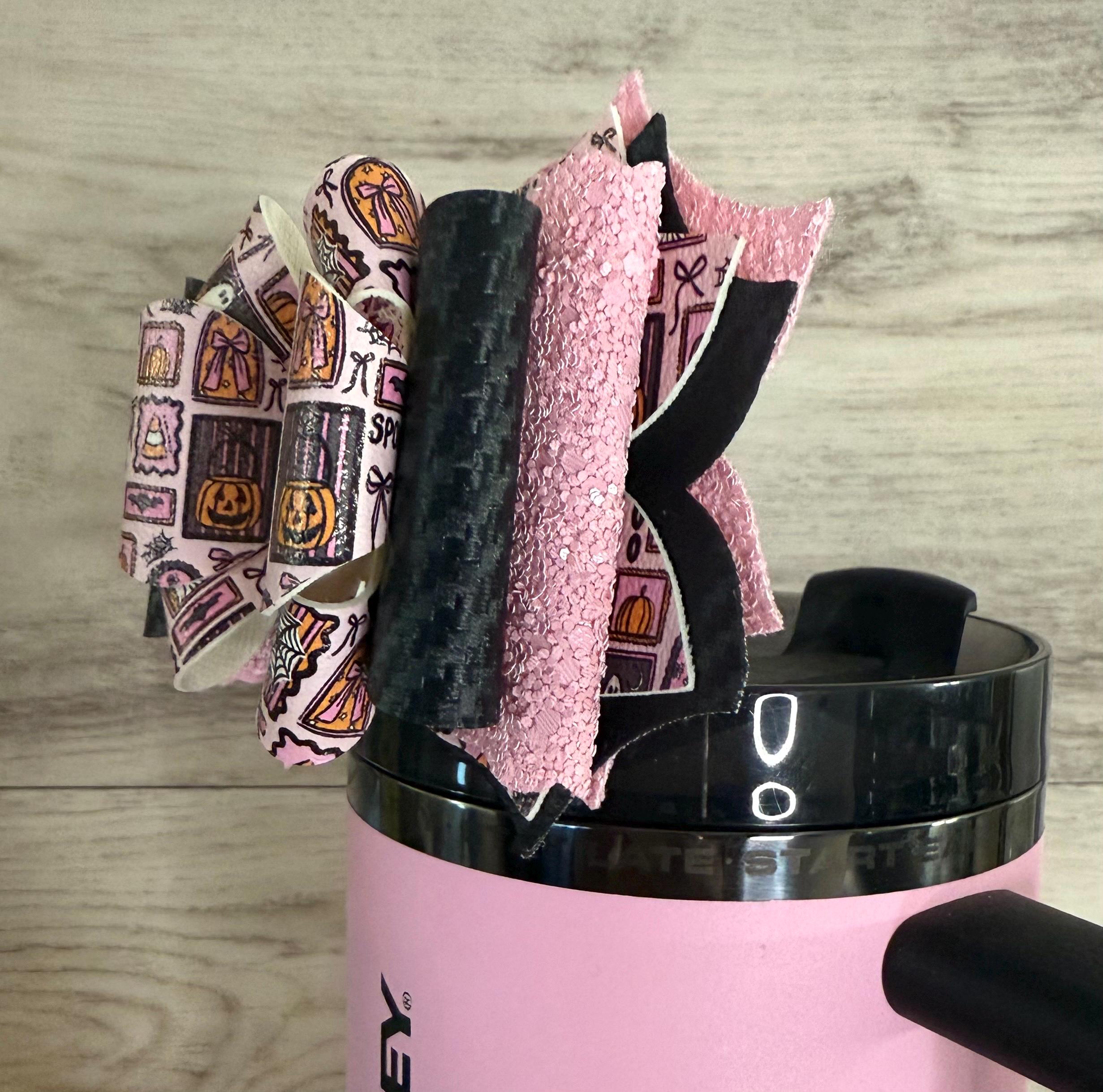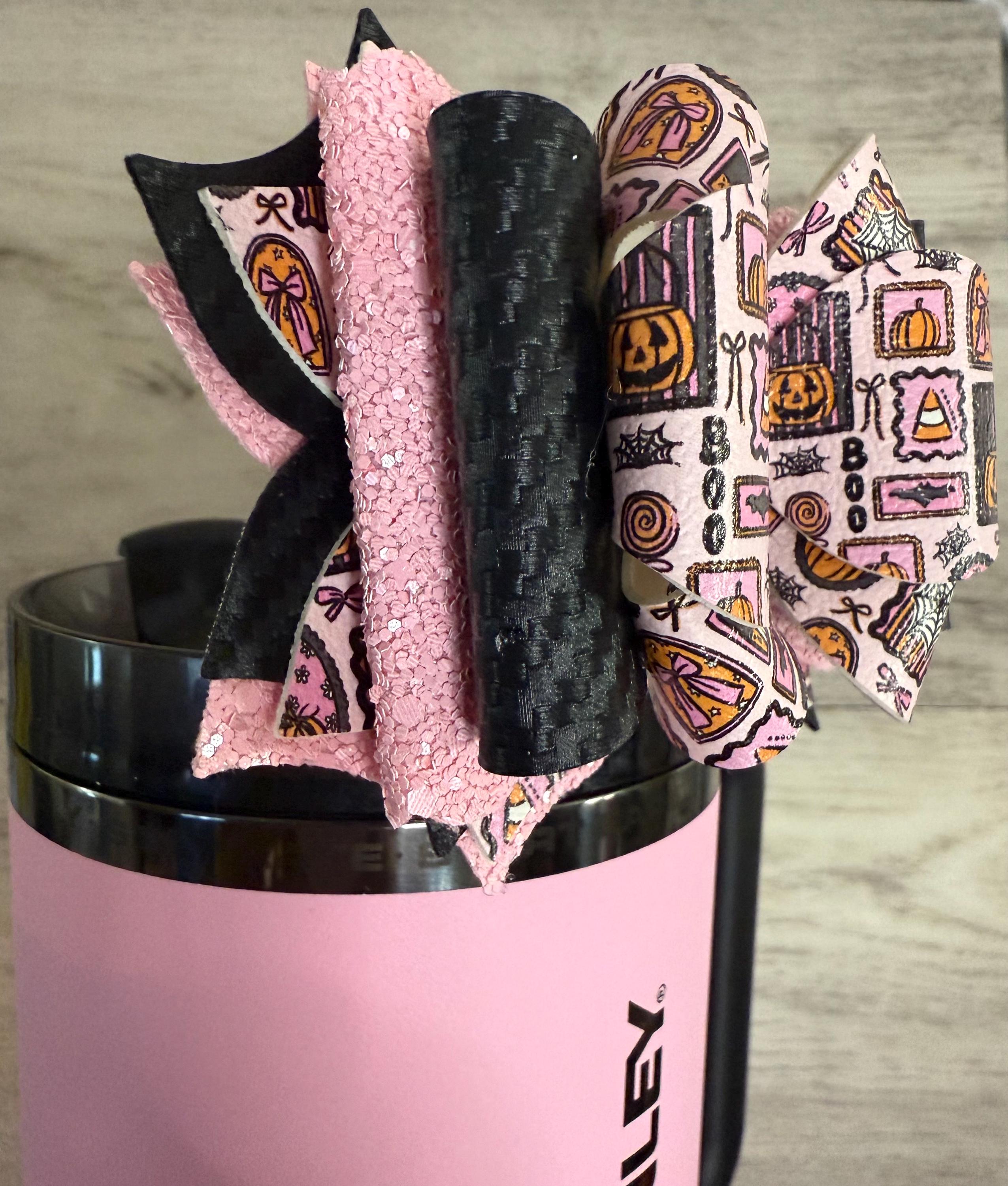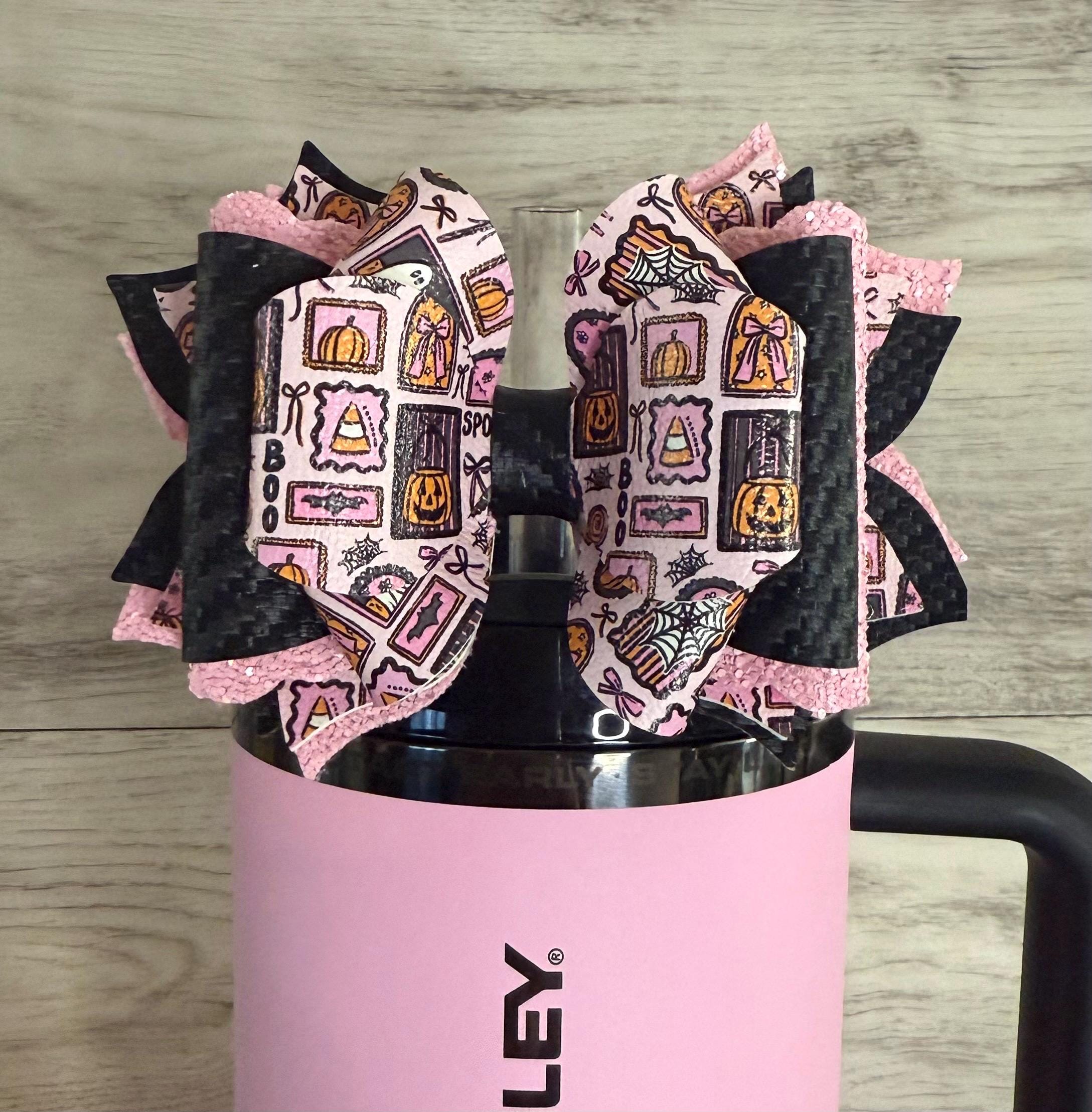 Handmade, 6 layer, fall / Halloween themed tumbler bow. Attachment fits 10mm straws.