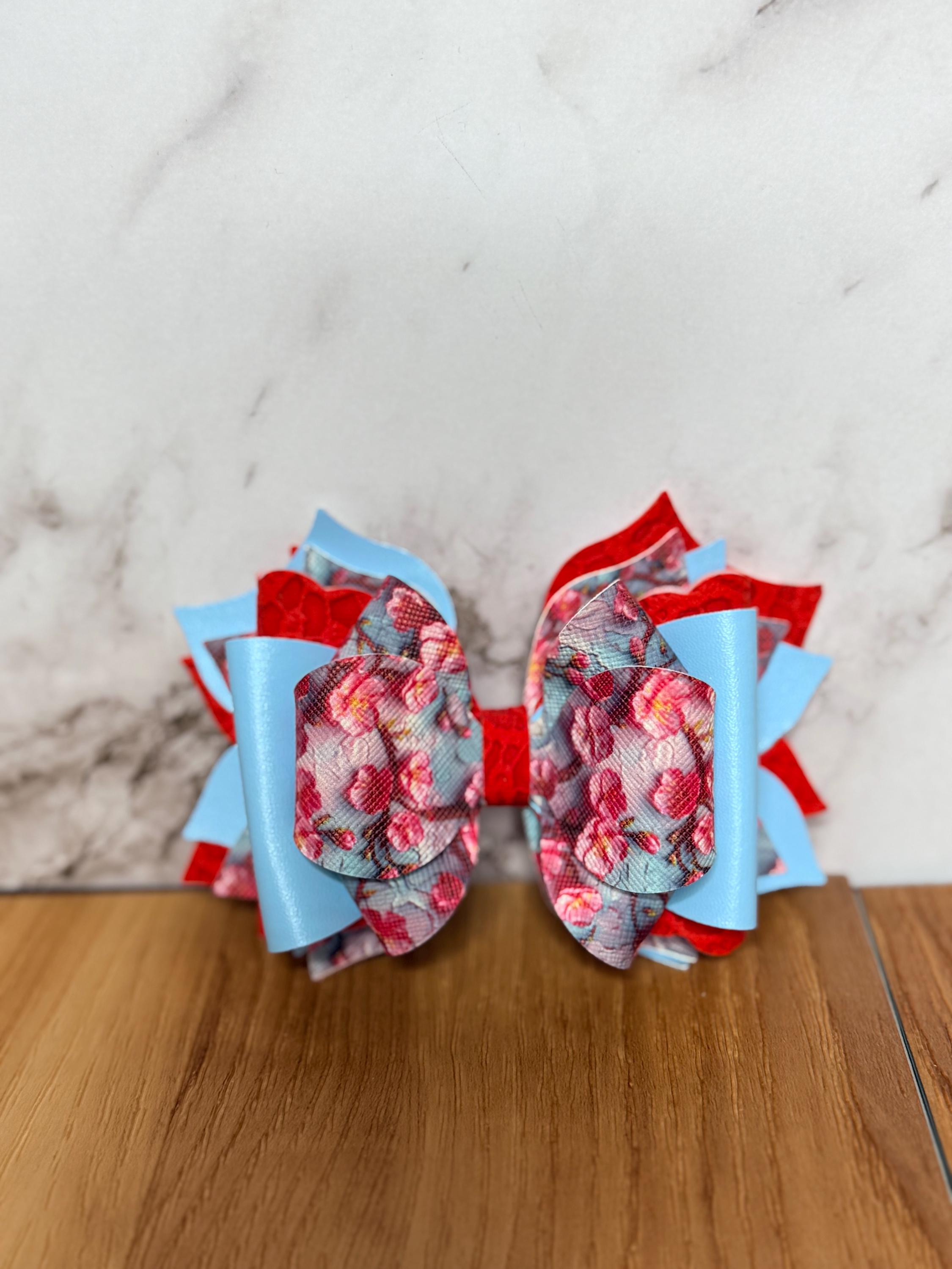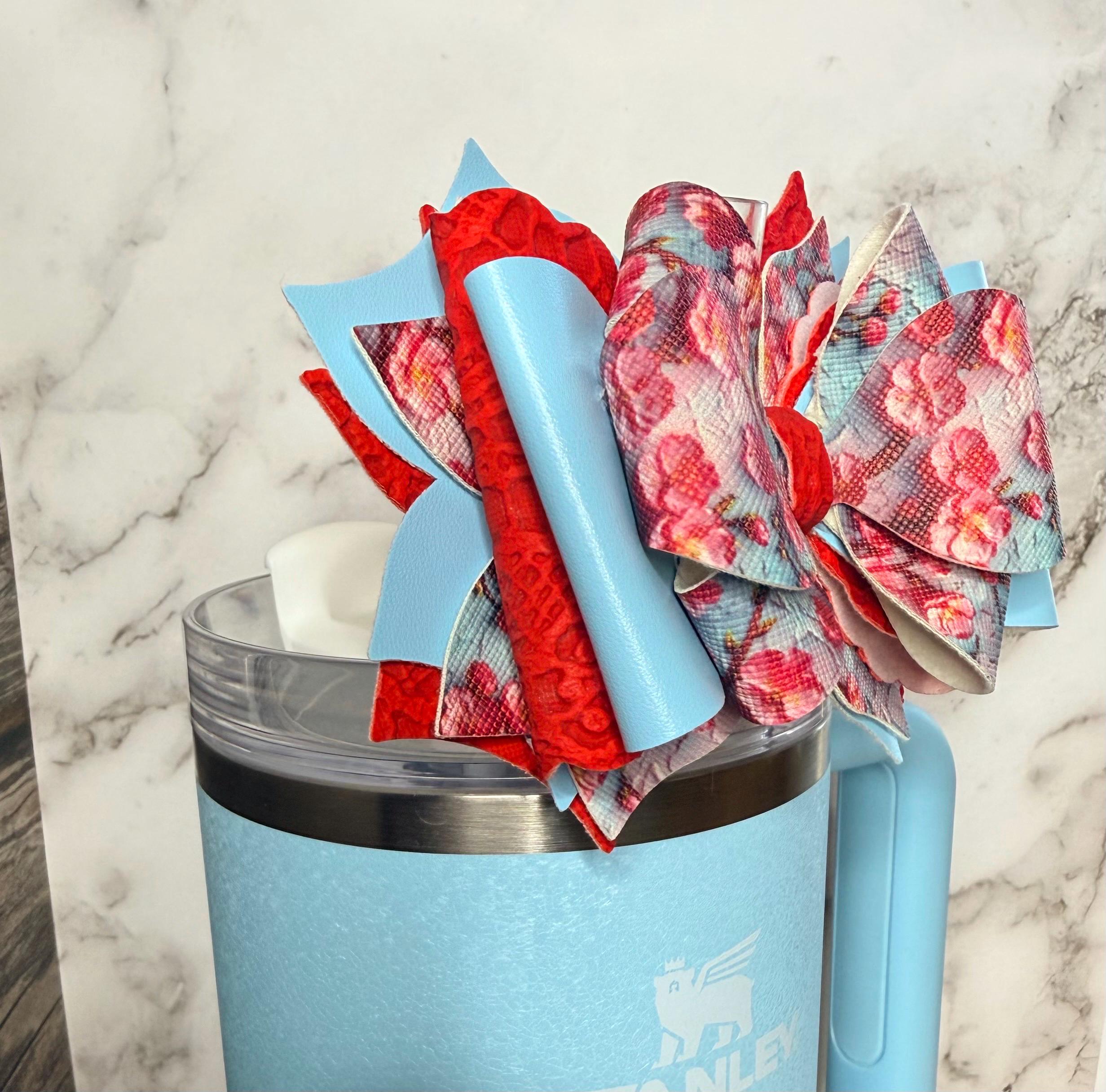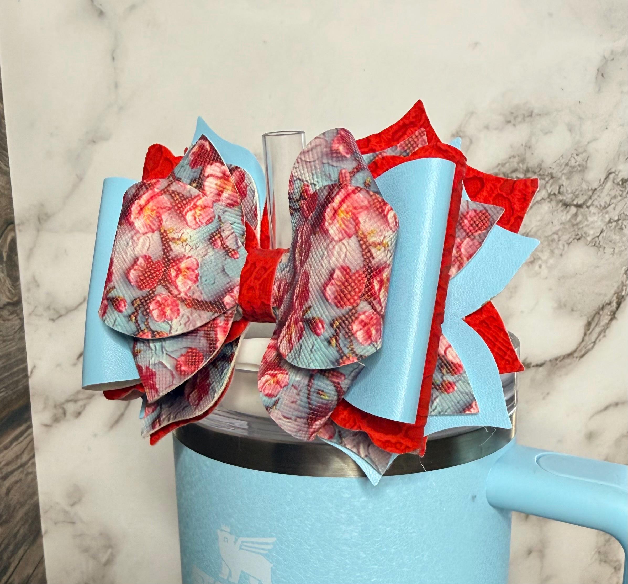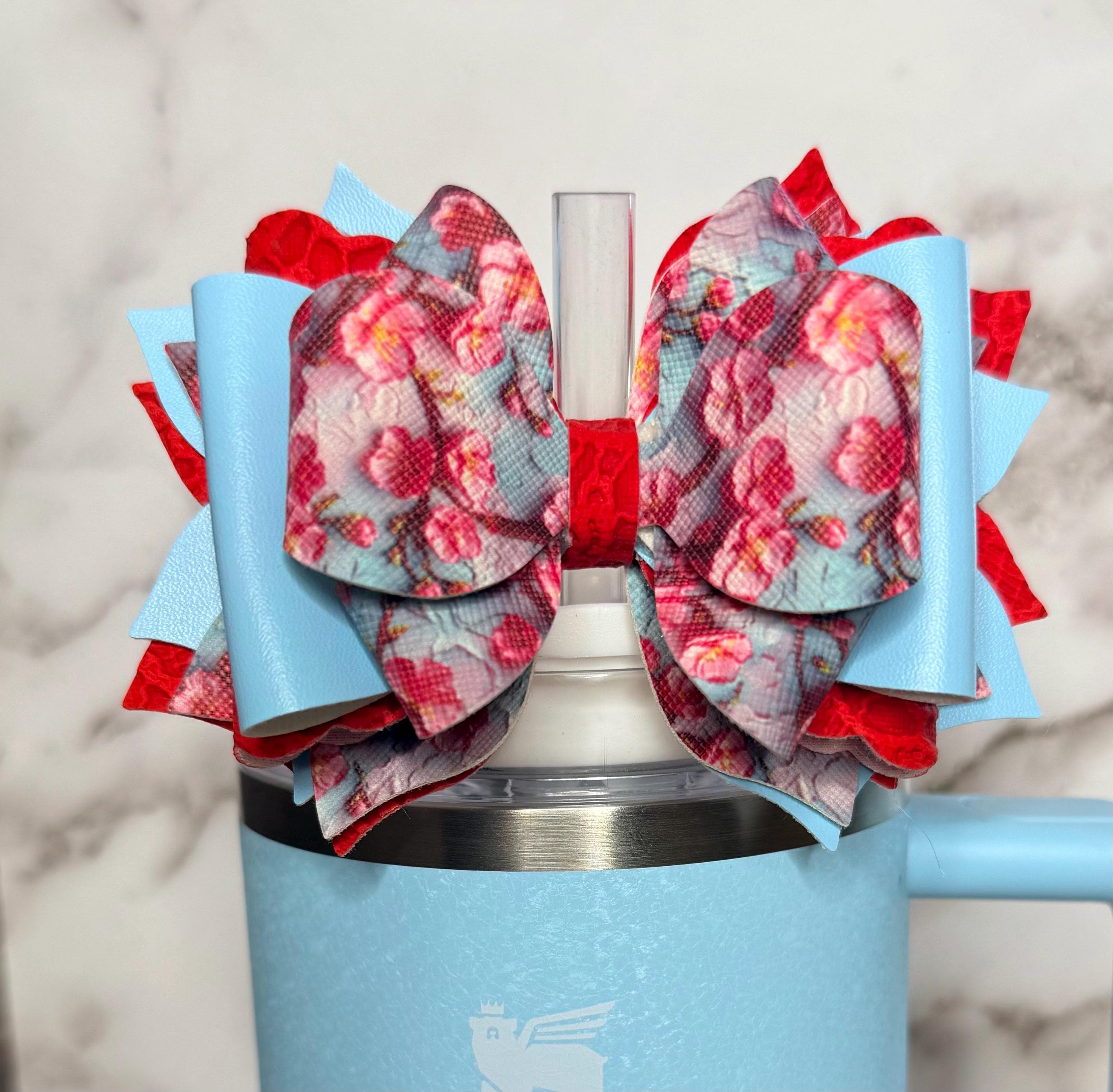 Handmade, 6 layer, floral themed tumbler bow, attachment fits 10mm straws.
