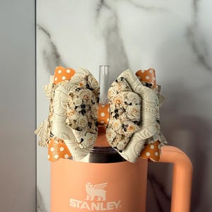 Handmade, 7 layer, tumbler bow. Attachment fits 10mm straws.