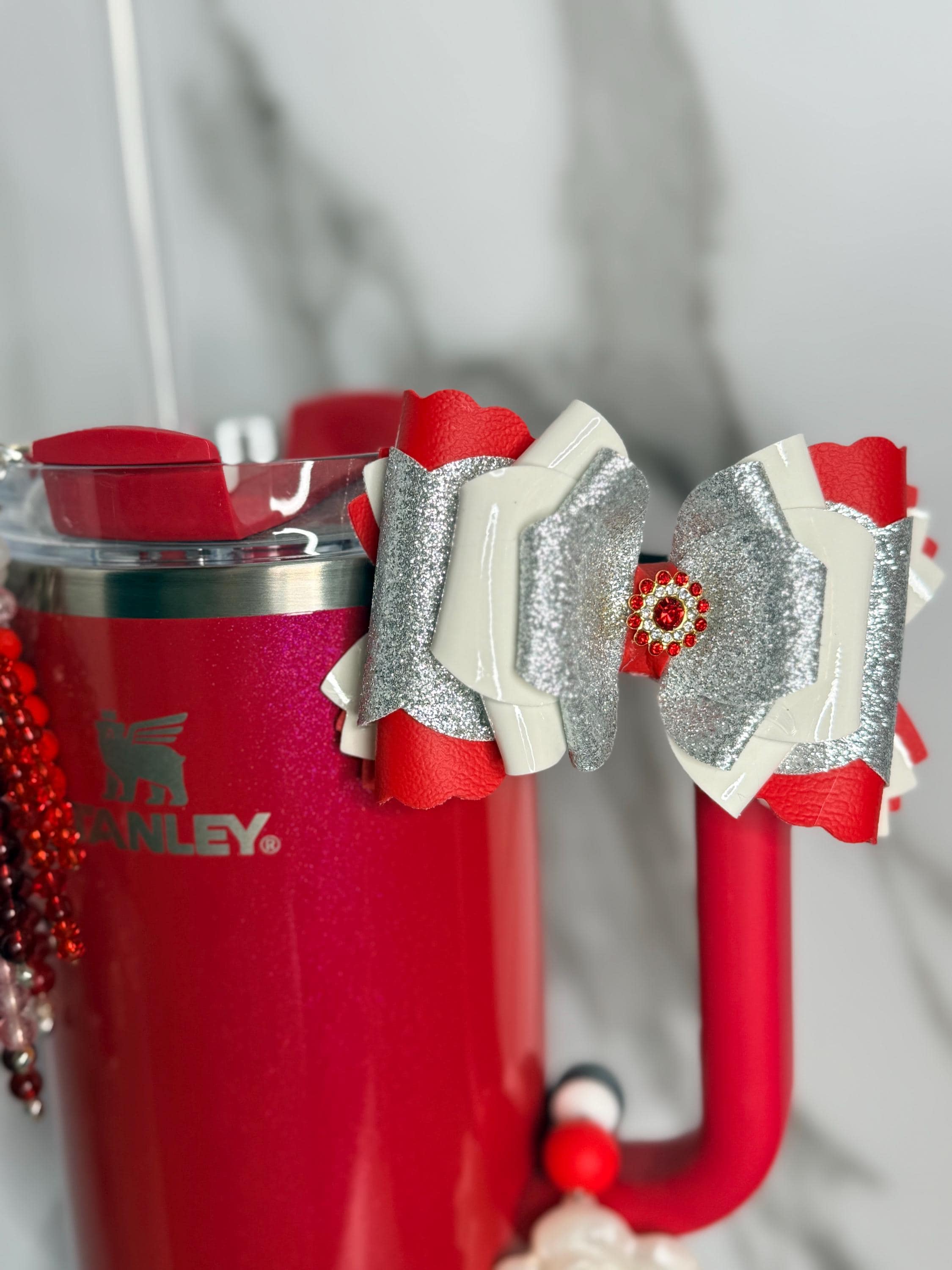 🎀 Perfect For: • Holiday + Valentine’s Day styling • Stanley & tumbler cup collectors • Gifting to friends, moms, teachers & coworkers • Cheer team / school spirit colors • Everyday glam drinkware décor