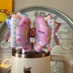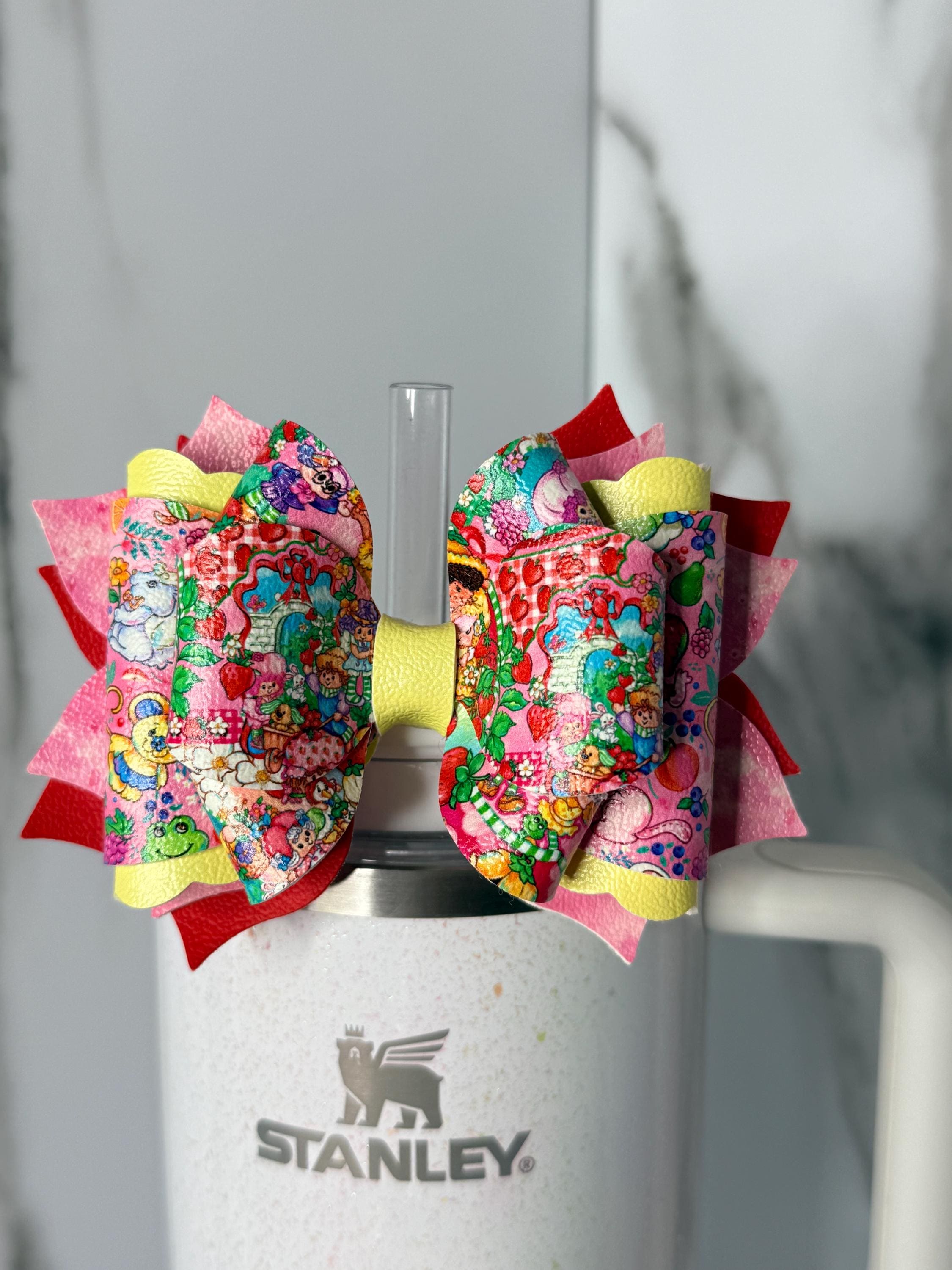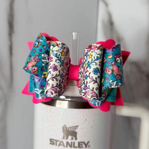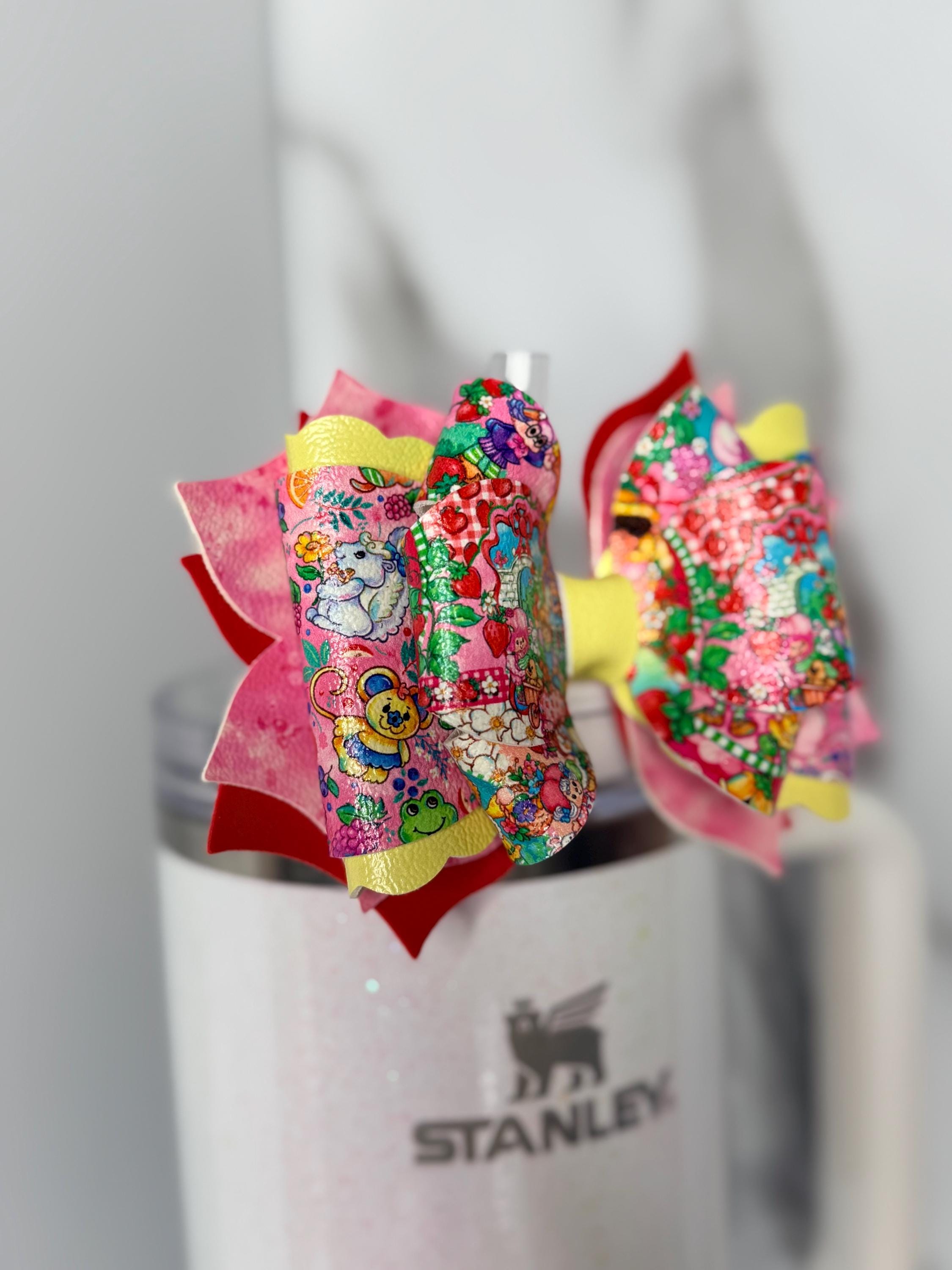 🎀 FEATURES: • Handmade tumbler straw bow • Bright, colorful faux leather with cute character print • Multi-layered, full-volume design • Fits most tumbler straws, including Stanley 30oz & 40oz • Durable, lightweight & eye-catching • Listing is for bow only, cup and straw not included. Ready to ship