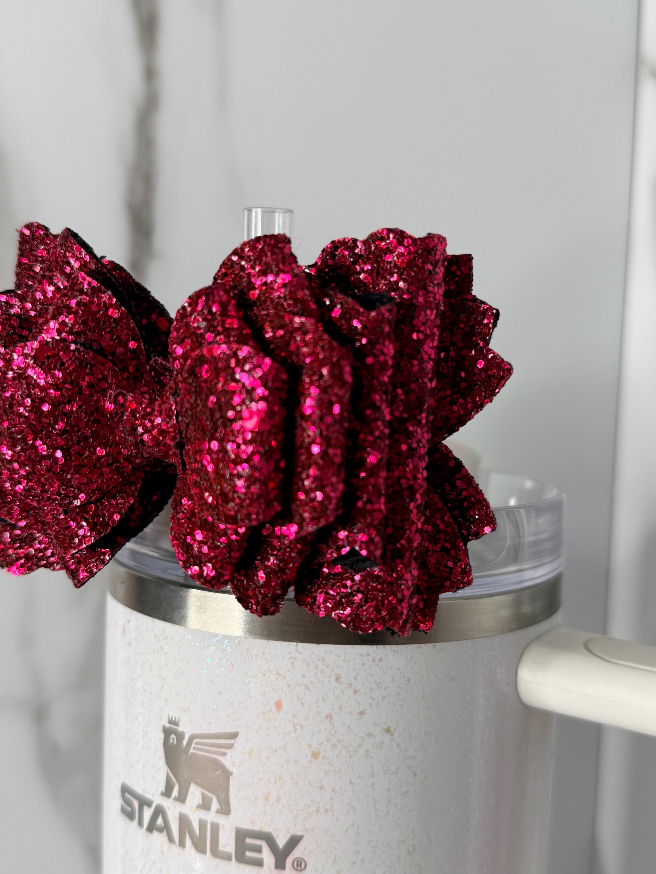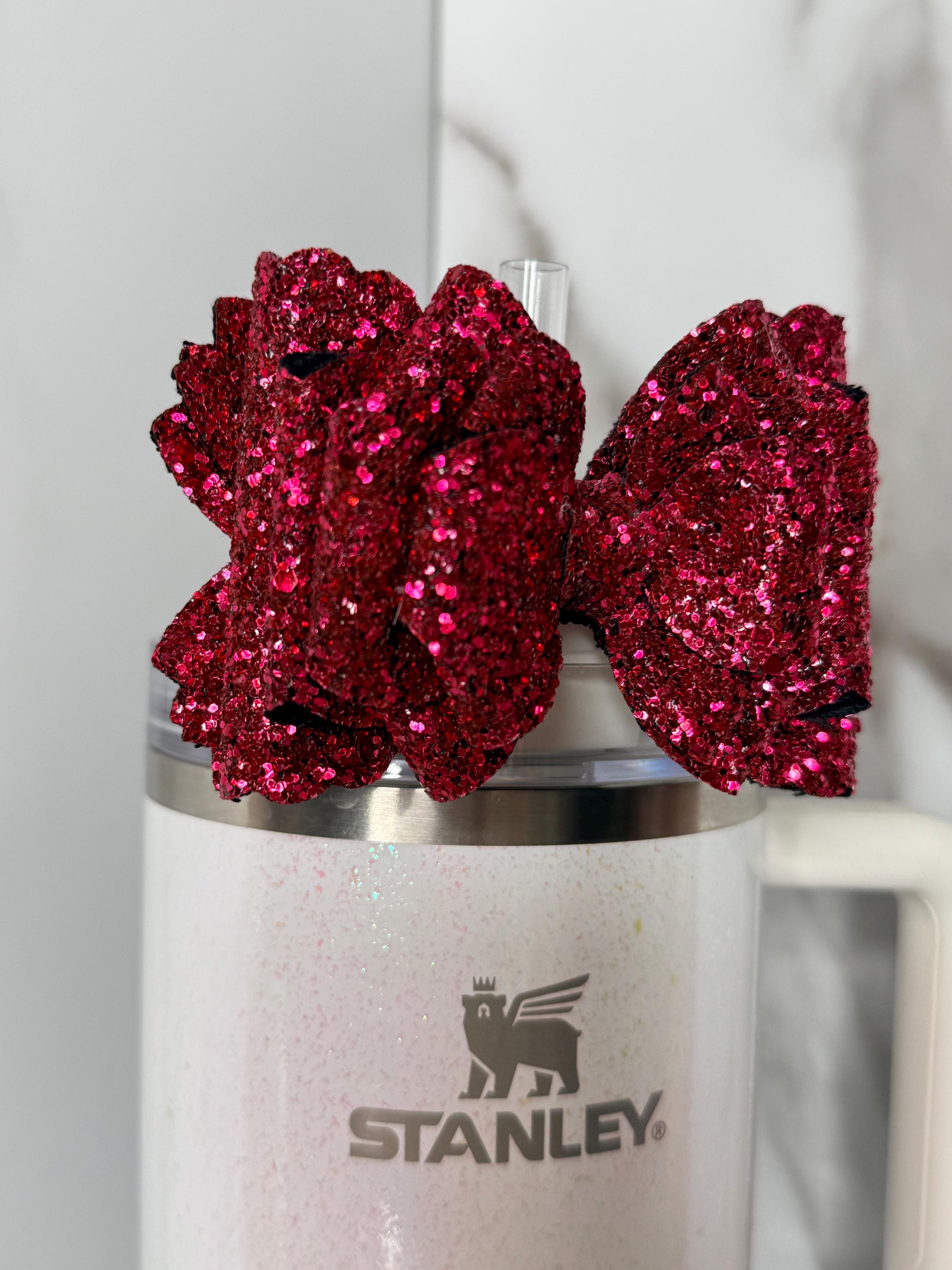 ✨ Features: • Full glitter pink bow design • Ultra-sparkly finish • Elastic attachment fits most handled tumblers • Great for birthdays, gifts, and everyday glam • Ready to ship