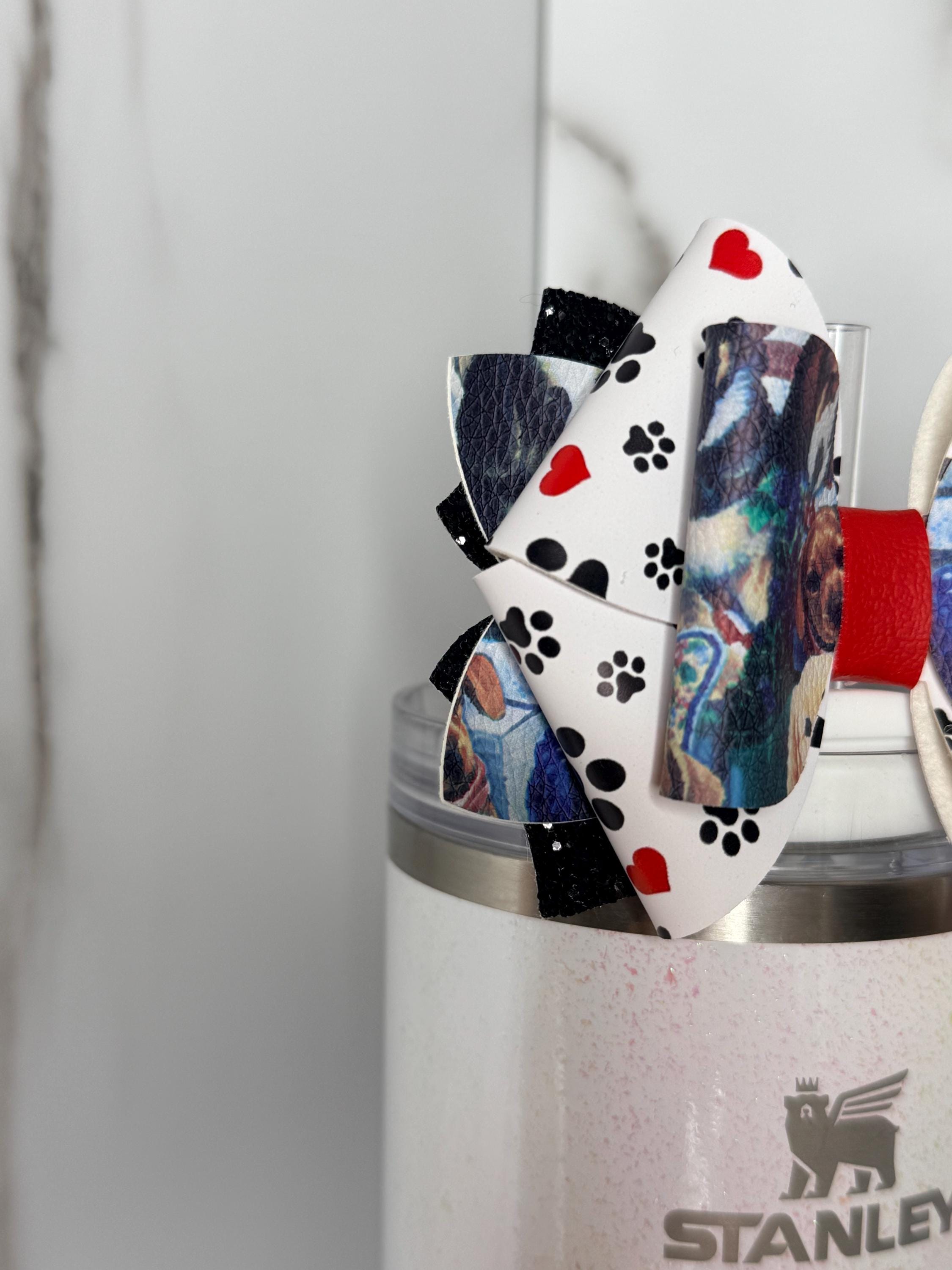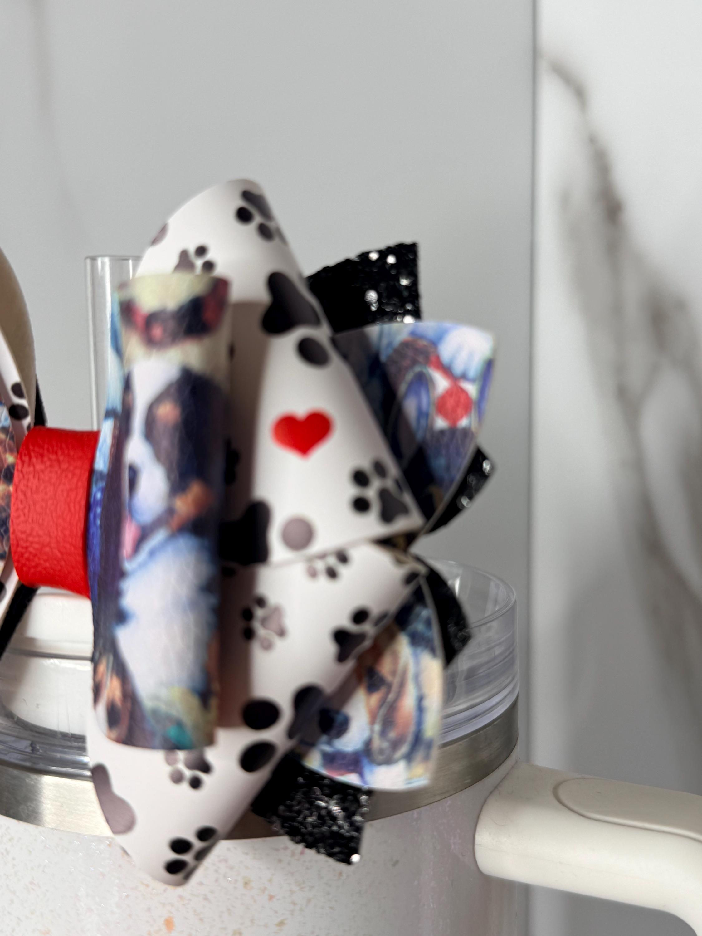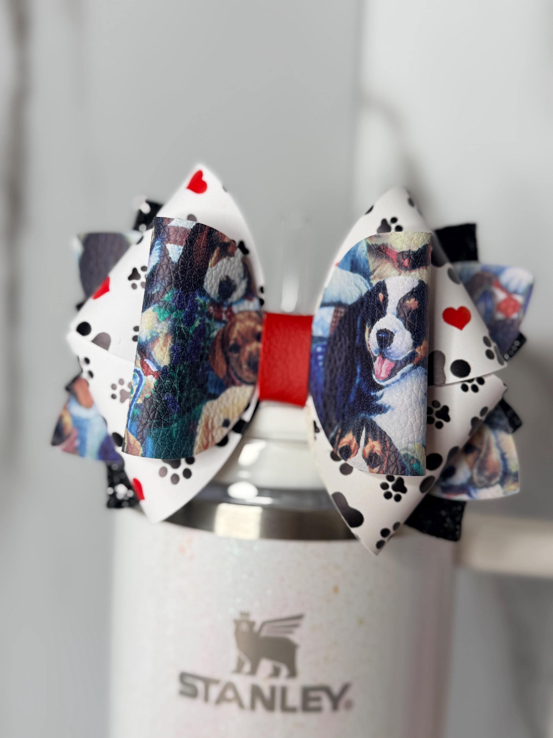 Show your love for furry friends with this dog-themed tumbler bow, featuring adorable pup illustrations, paw prints, and a pop of red. The perfect accessory for pet moms, groomers, vets, and dog lovers of all kinds!