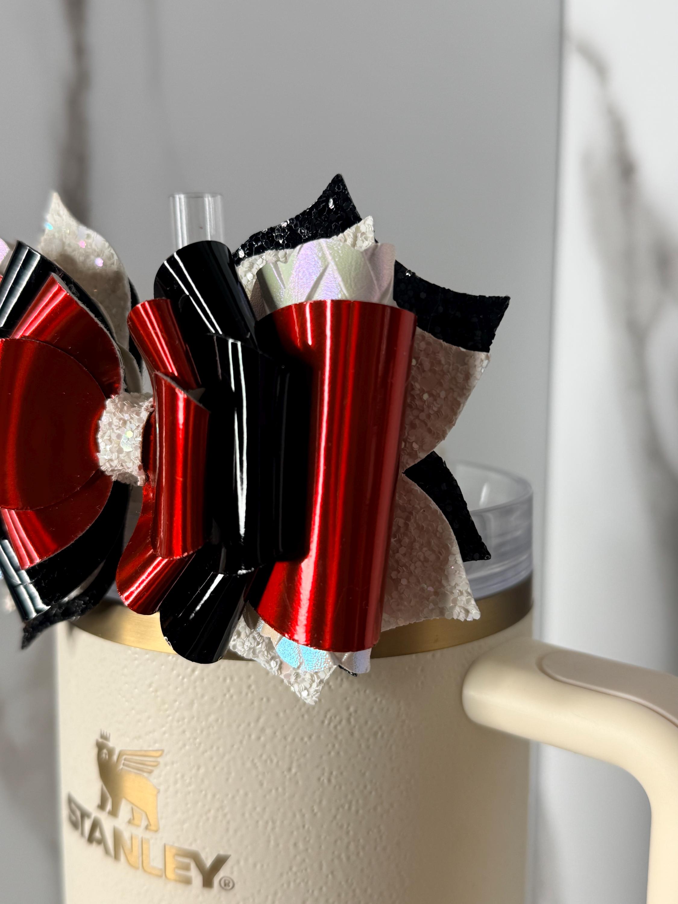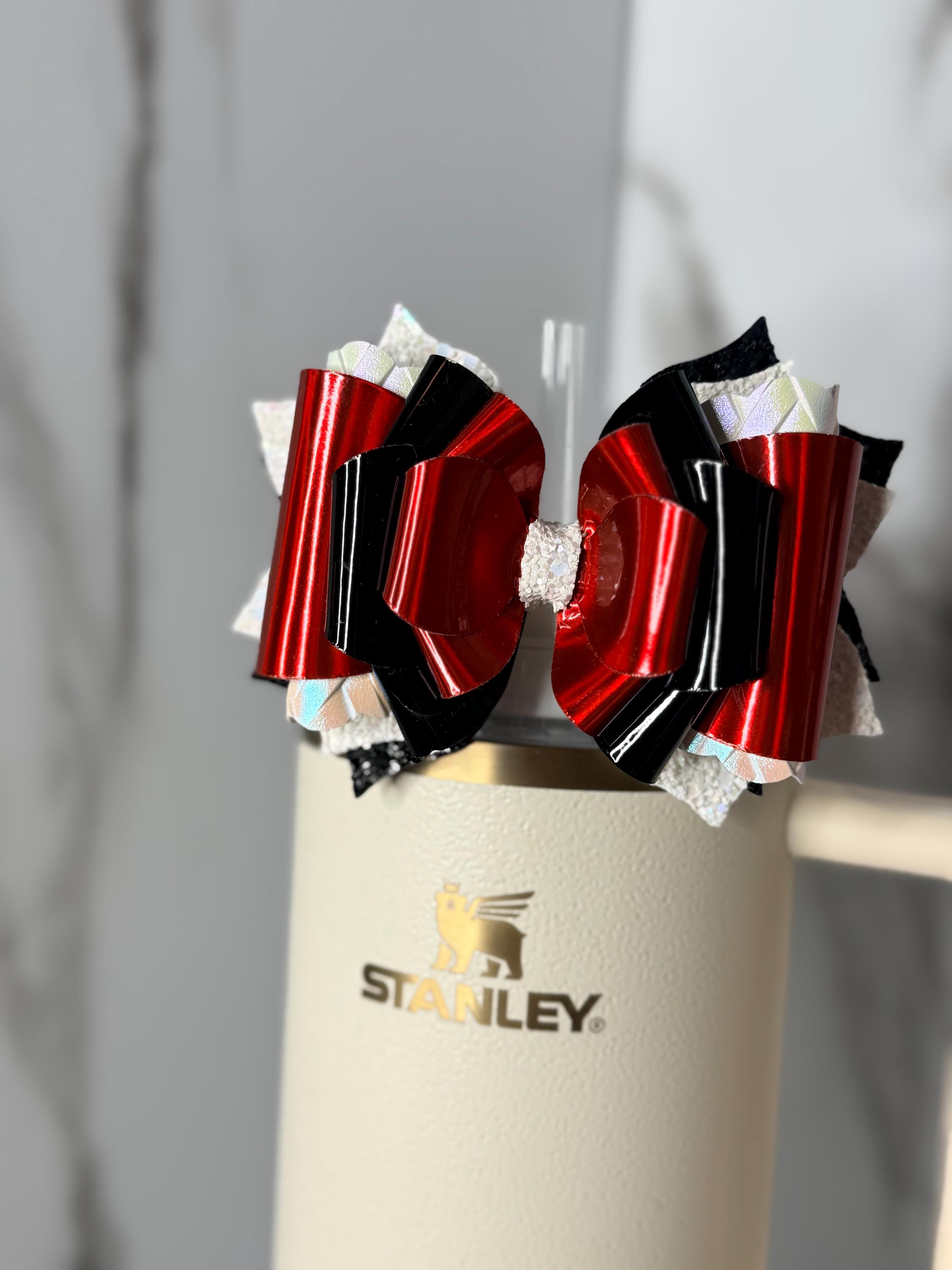 This red and black metallic tumbler bow is bold, glossy, and packed with layered detail. A perfect accessory for sports fans, gothic styles, holiday cups, or anyone who loves striking color contrast.