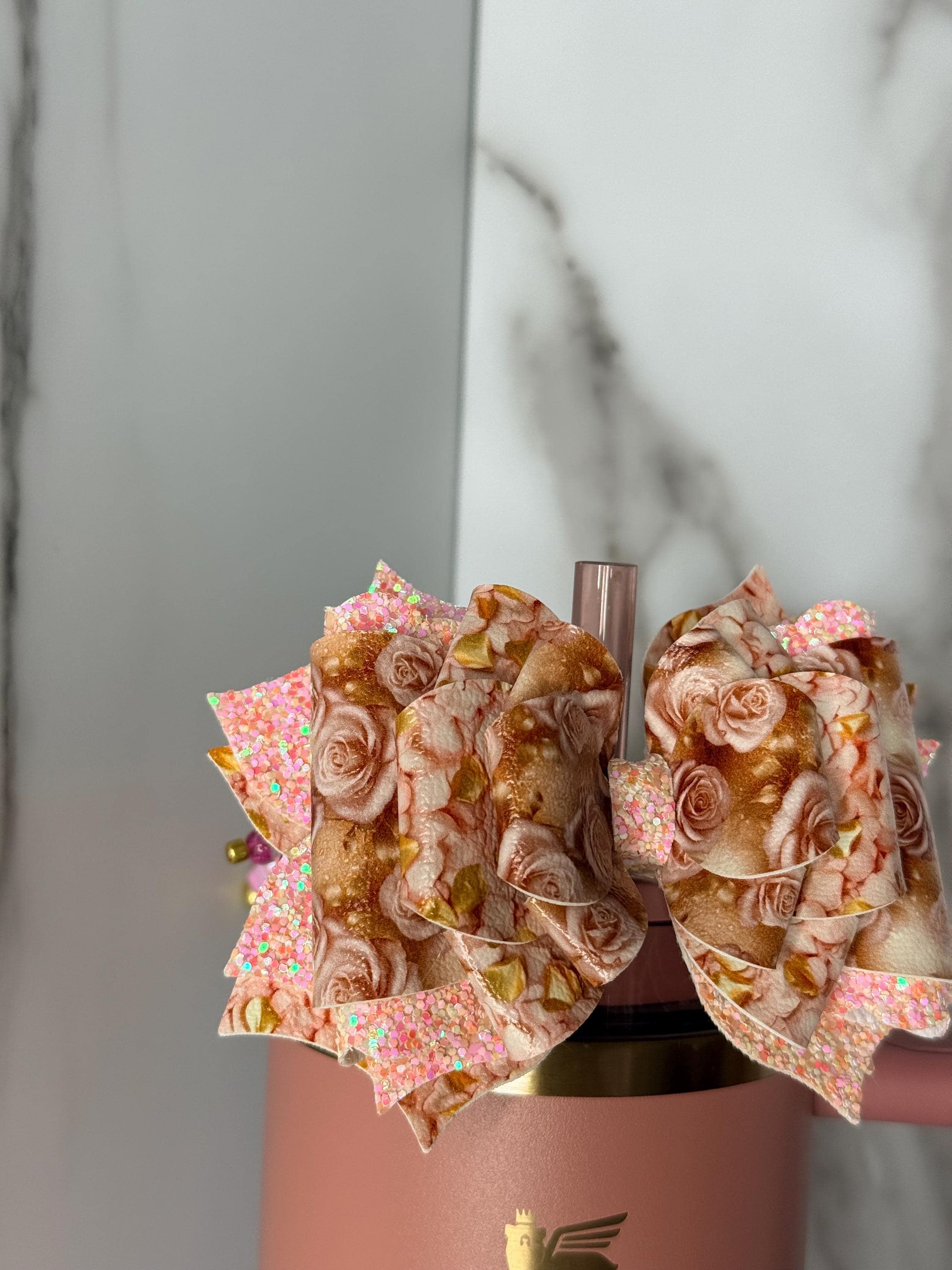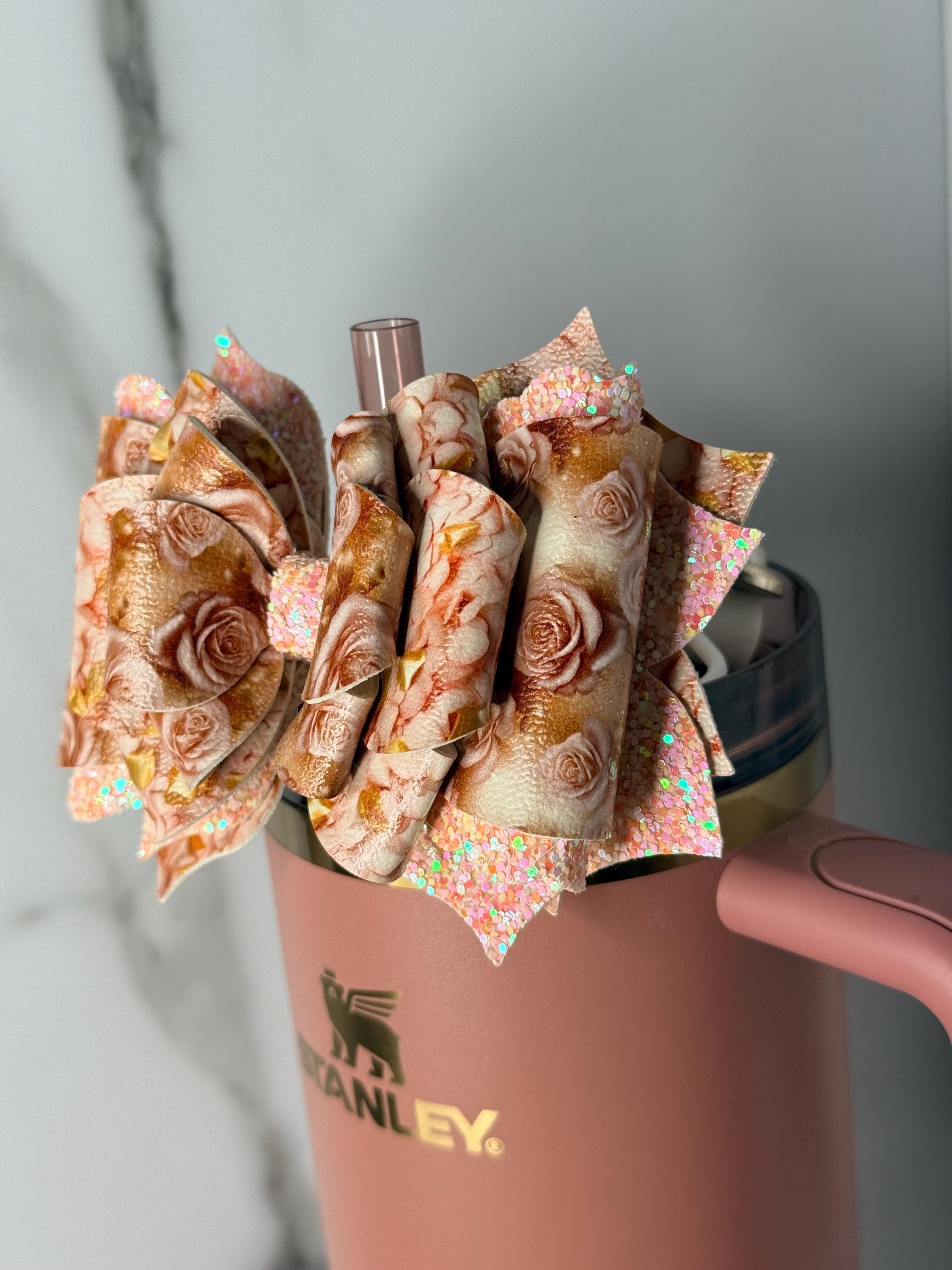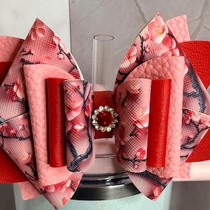 These bows are handmade, so some variations are to be expected. Each listing is for one bow and doesn’t include the cup or any additional accessories that may be seen in the photo. Cup bows are 4-5” in length and handle bows are 3.5-4”. Handle bows may also be used on the straw by removing the Velcro attachment.