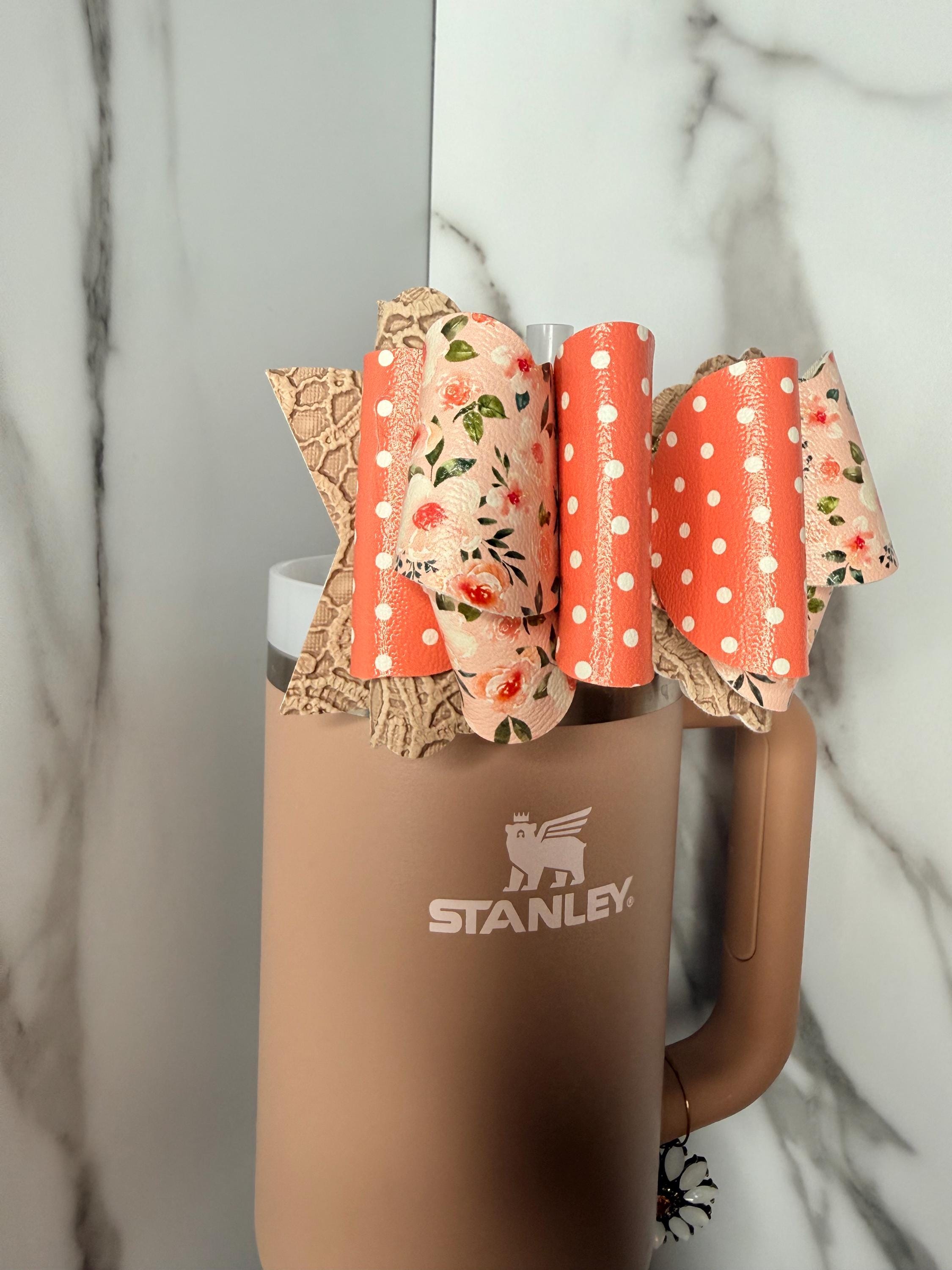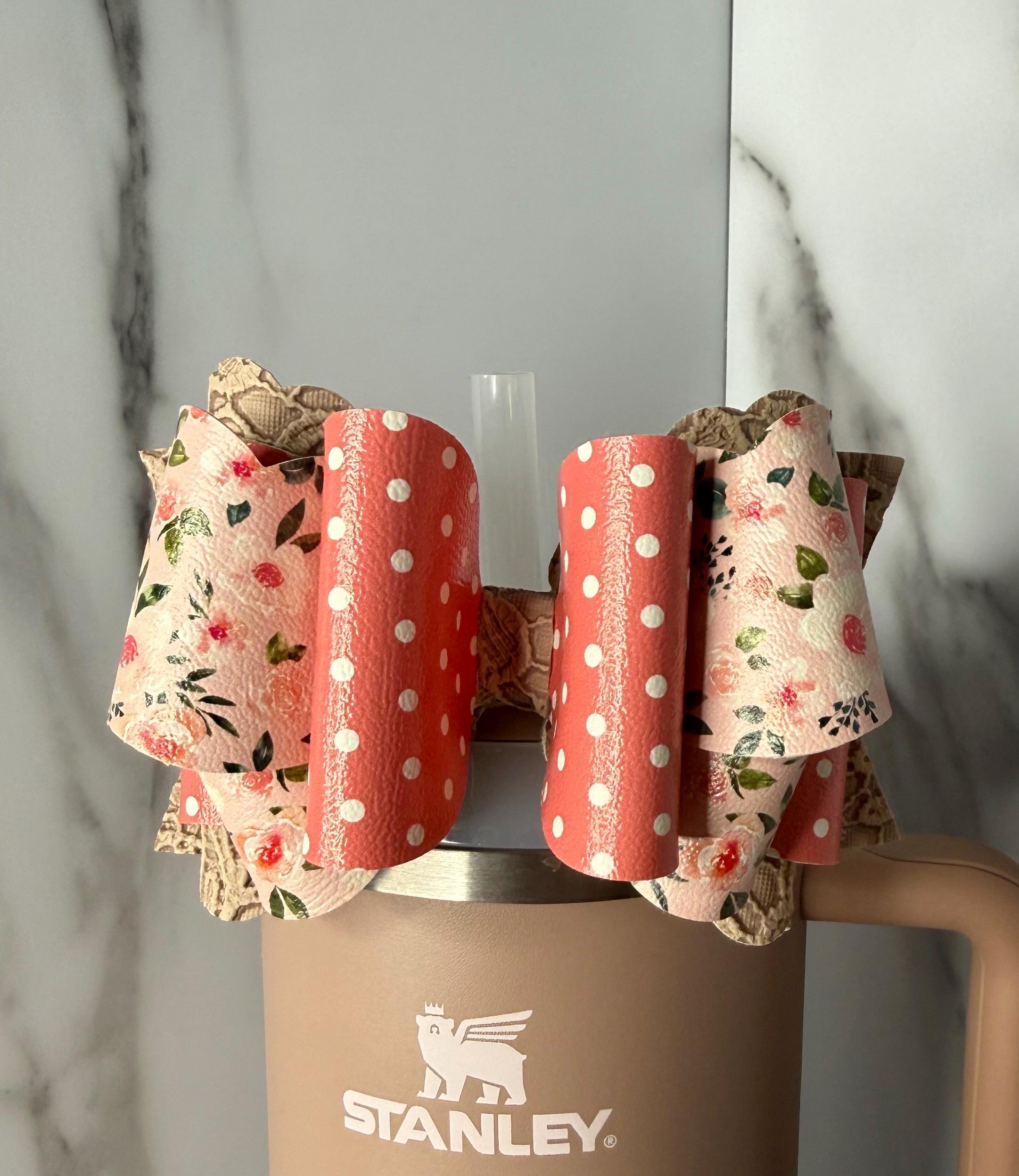 These bows are handmade, so some variations are to be expected. Each listing is for one bow and doesn’t include the cup or any additional accessories that may be seen in the photo. Cup bows are 4-5” in length and handle bows are 3.5-4”. Handle bows may also be used on the straw by removing the Velcro attachment.