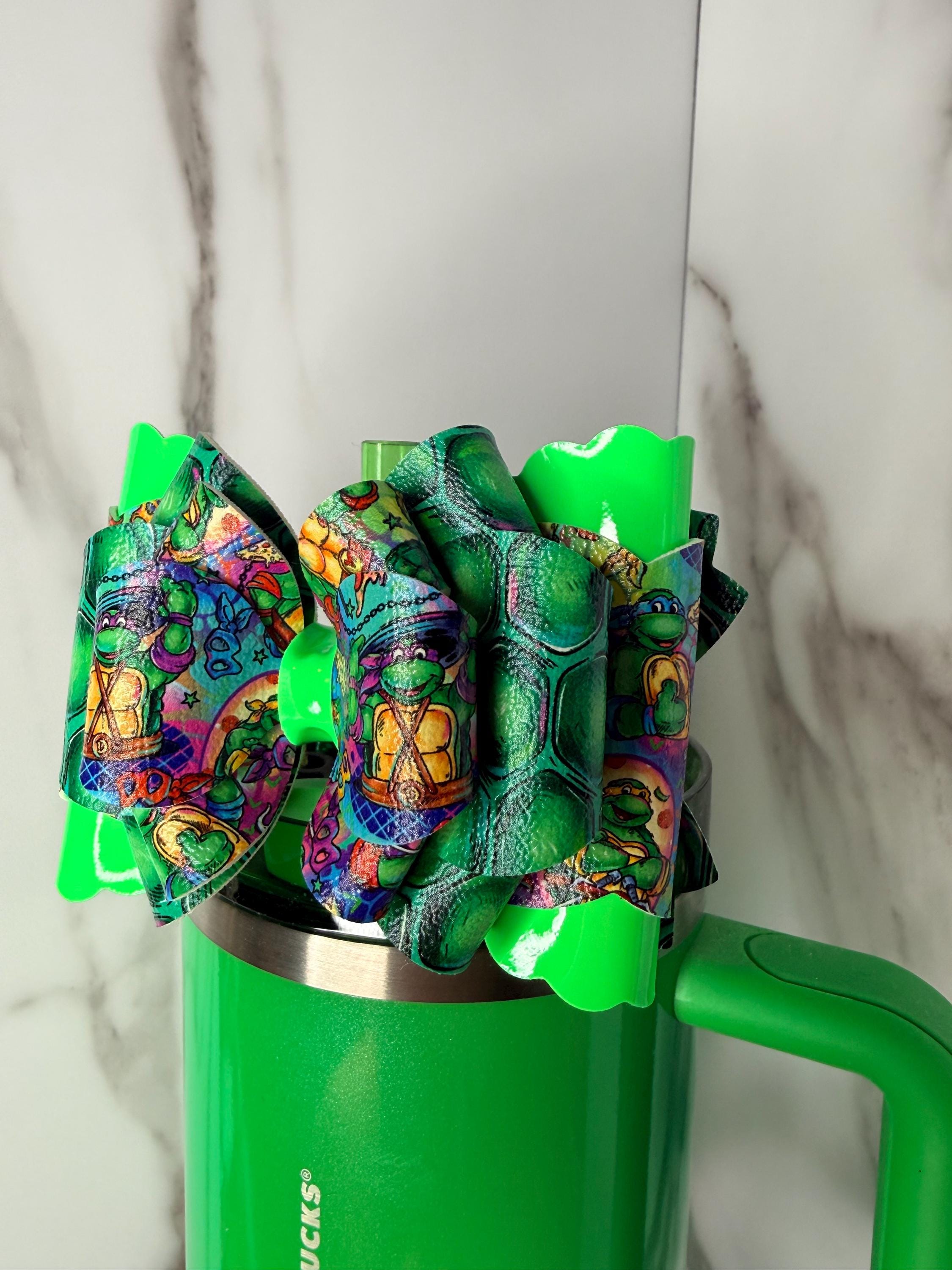 Green Turtle Tumbler Bow | Fun Stanley Cup Bow | Bright Green Cup Accessory | Ready to Ship