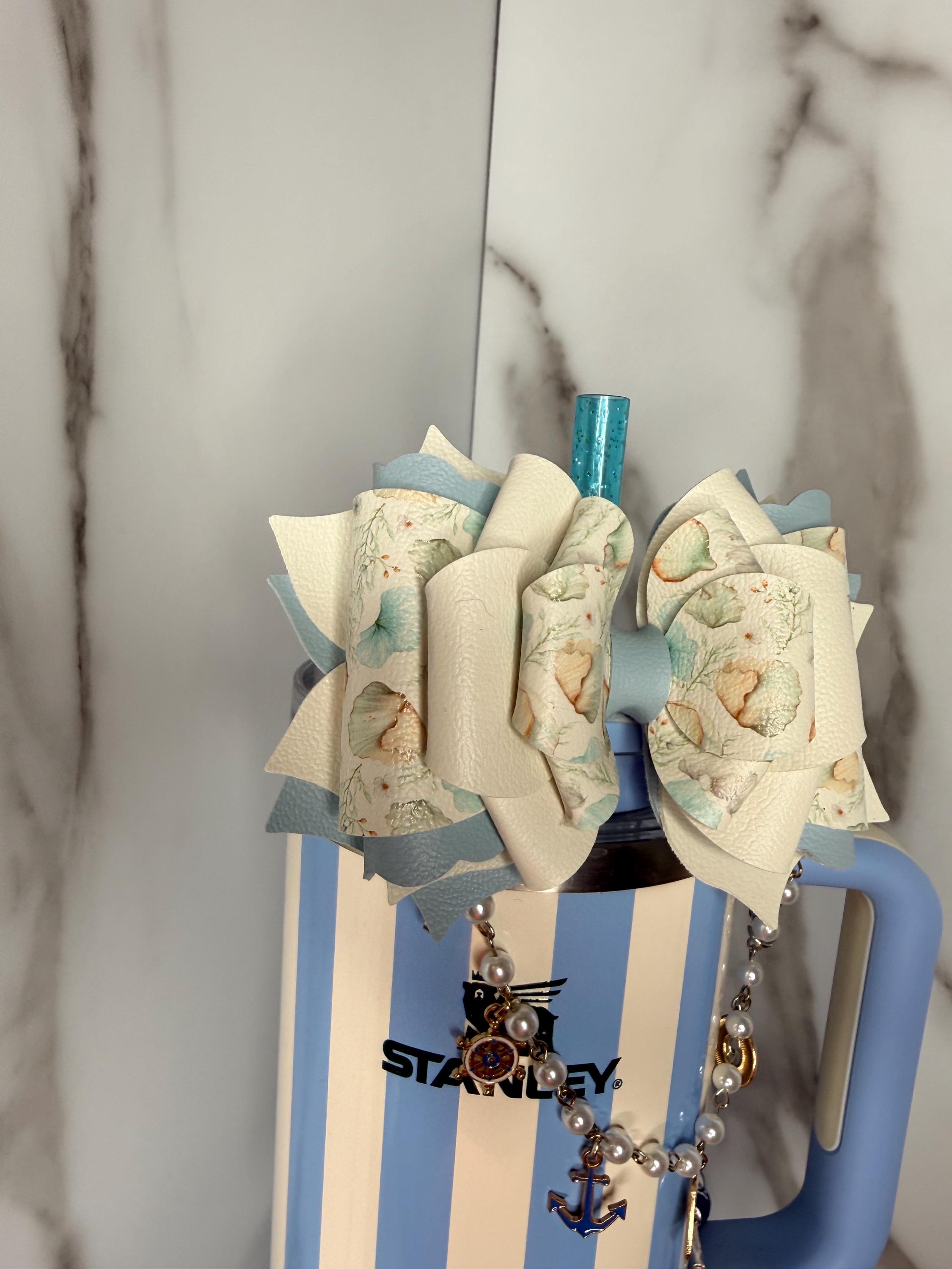 Nautical Tumbler Bow | Seashell Stanley Cup Bow | Coastal Cup Accessory | Beach Inspired Bow | Ready to Ship