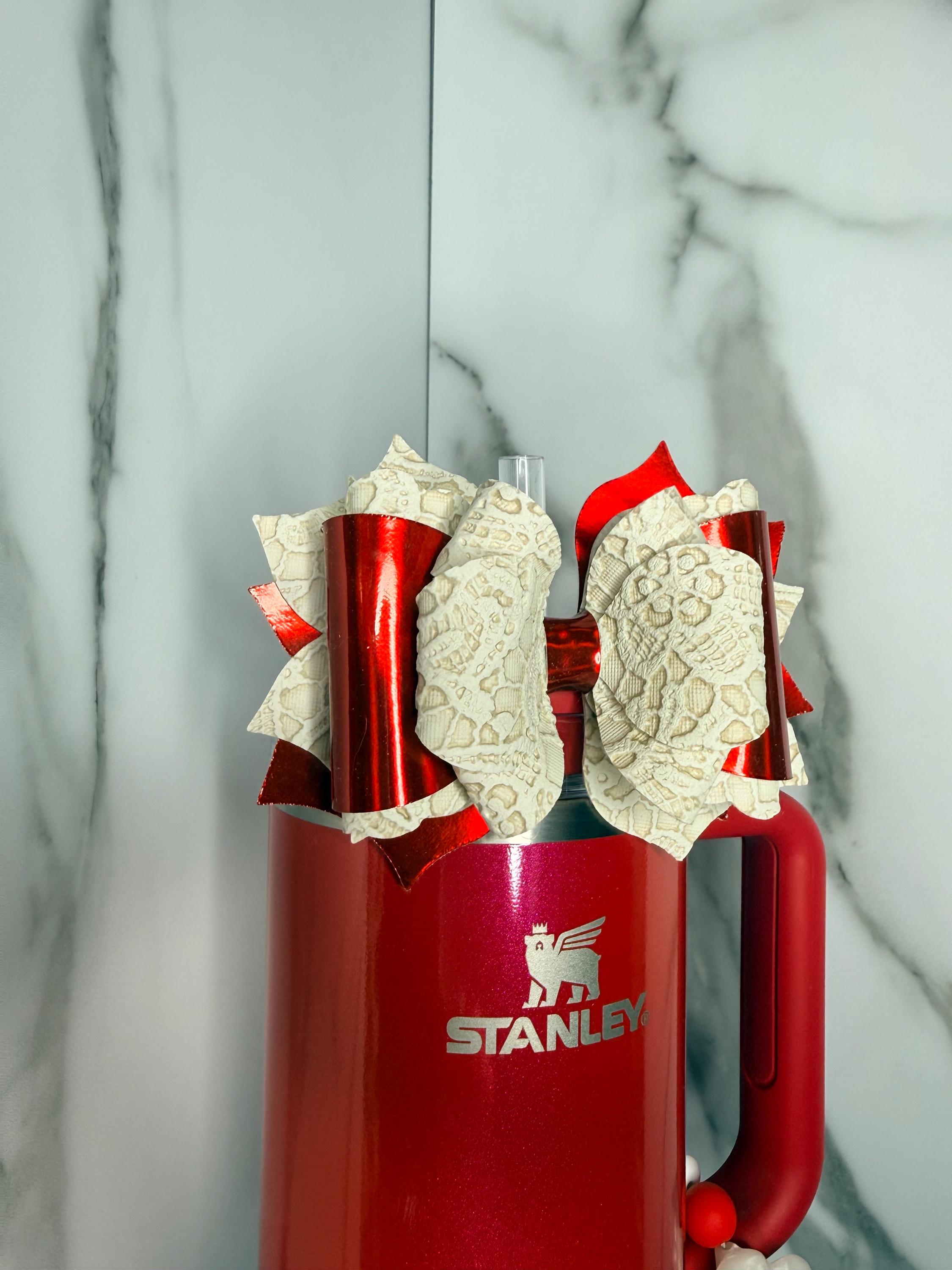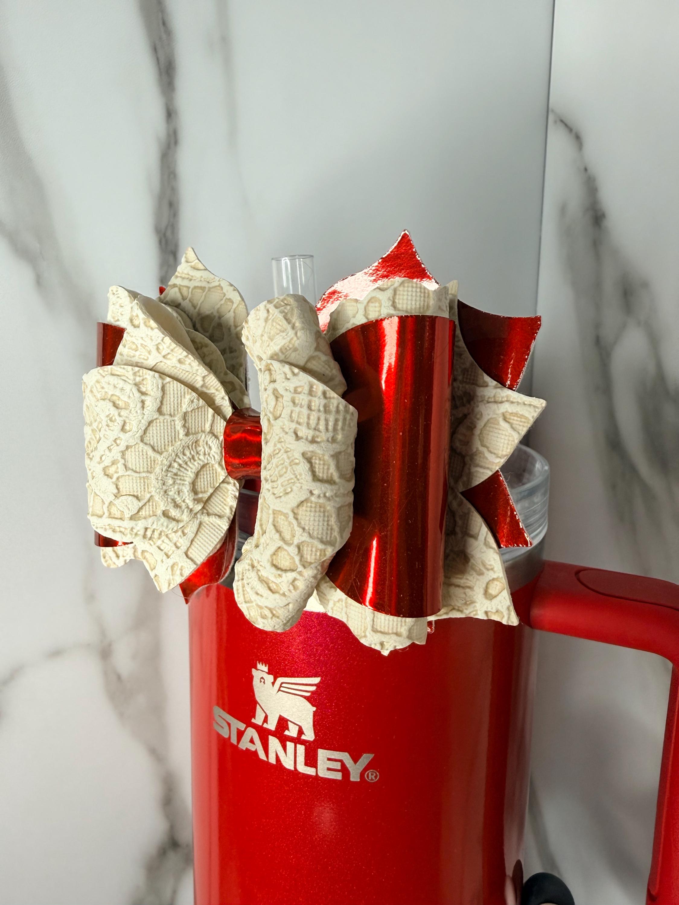 This red lace-inspired tumbler bow with metallic accents is perfect for Valentine’s Day or romantic everyday style. Elegant, bold, and eye-catching—an instant upgrade for your Stanley cup.