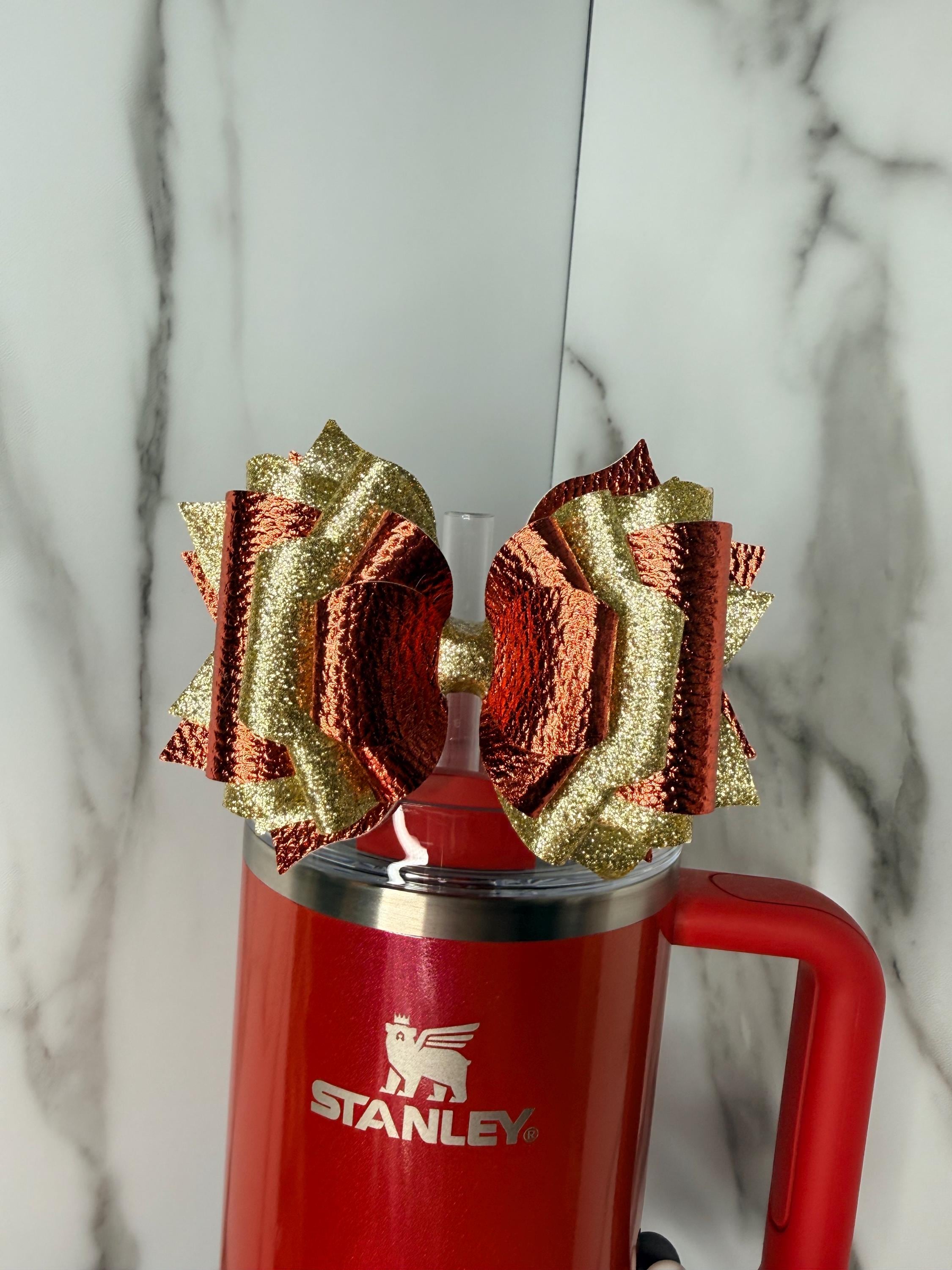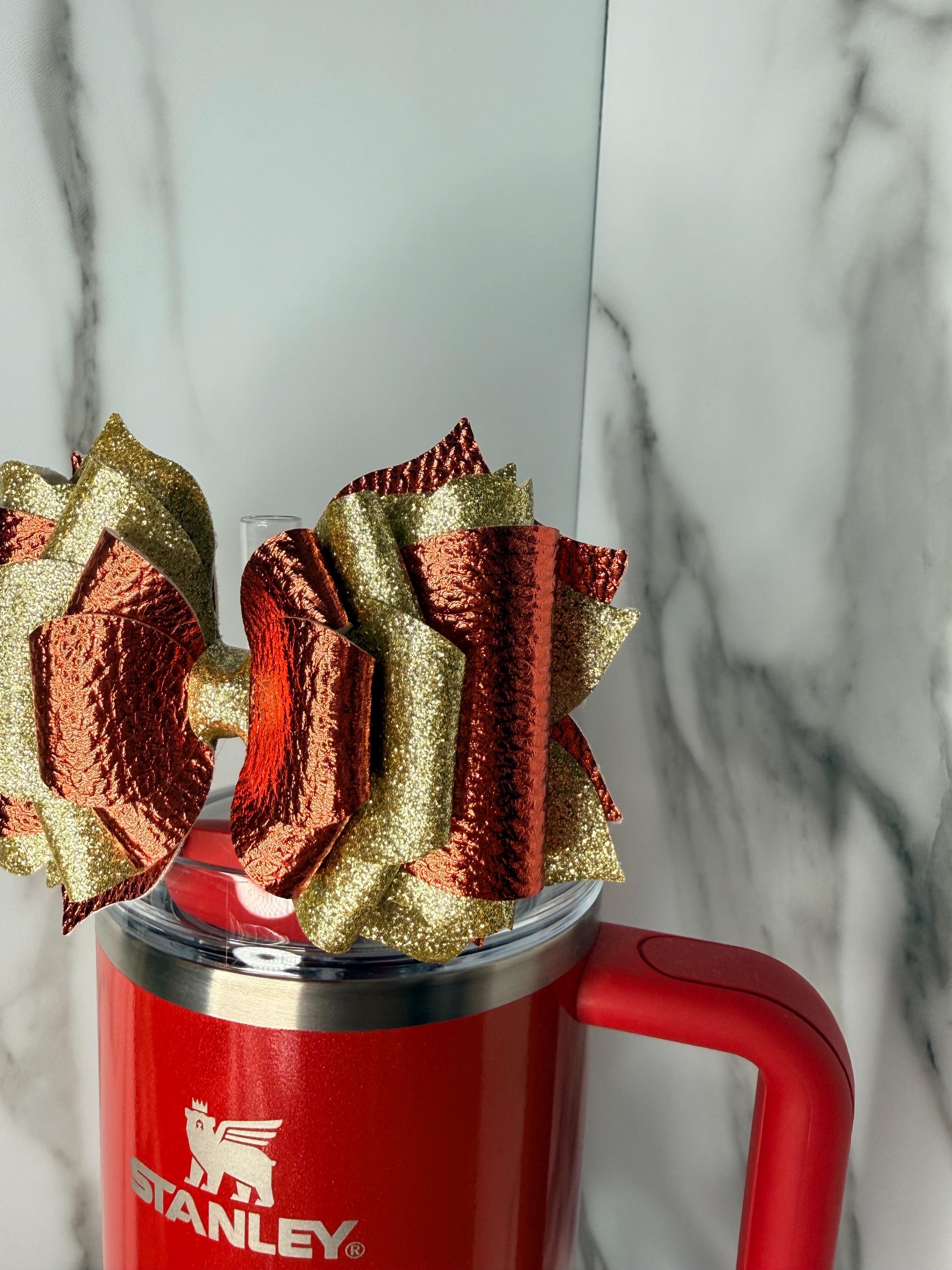 This bronze and gold metallic tumbler bow brings luxury glam to your Stanley cup. Perfect for fall aesthetics, neutral lovers, or anyone wanting an elevated, designer-inspired look.