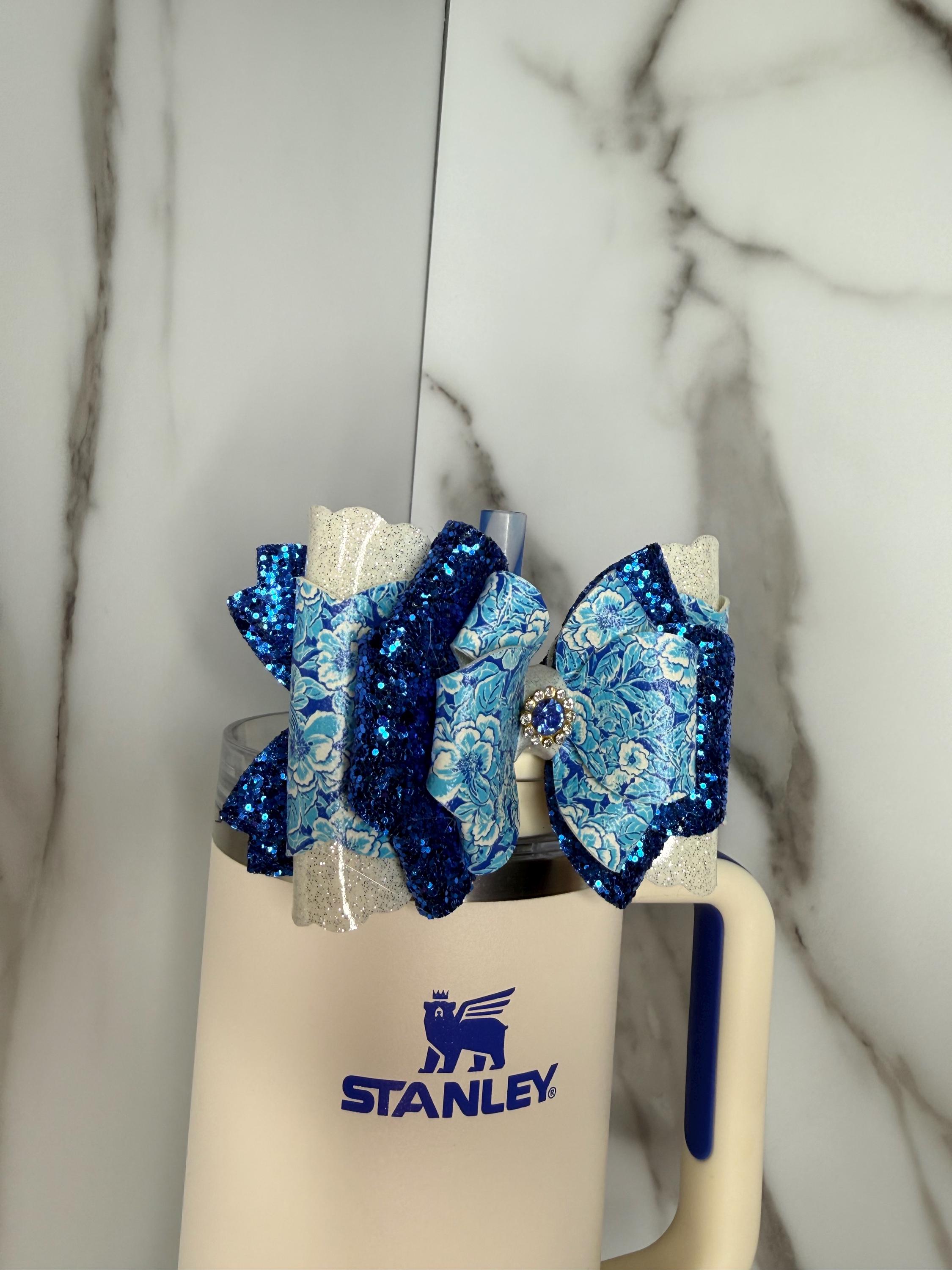 Soft florals and glitter accents make this blue tumbler bow perfect for cottagecore lovers and floral aesthetics. A beautiful everyday accessory that adds charm and sparkle to your cup.
