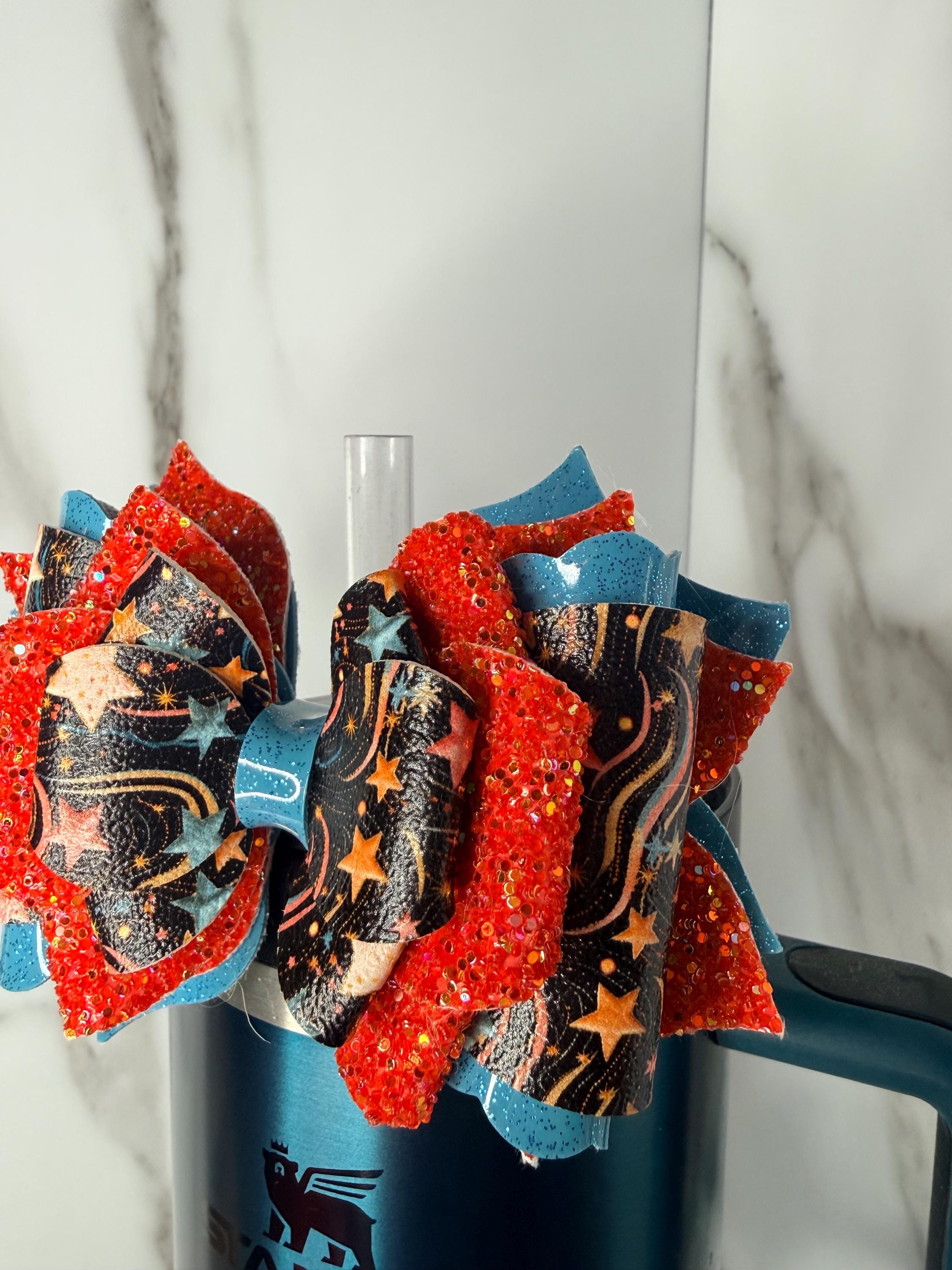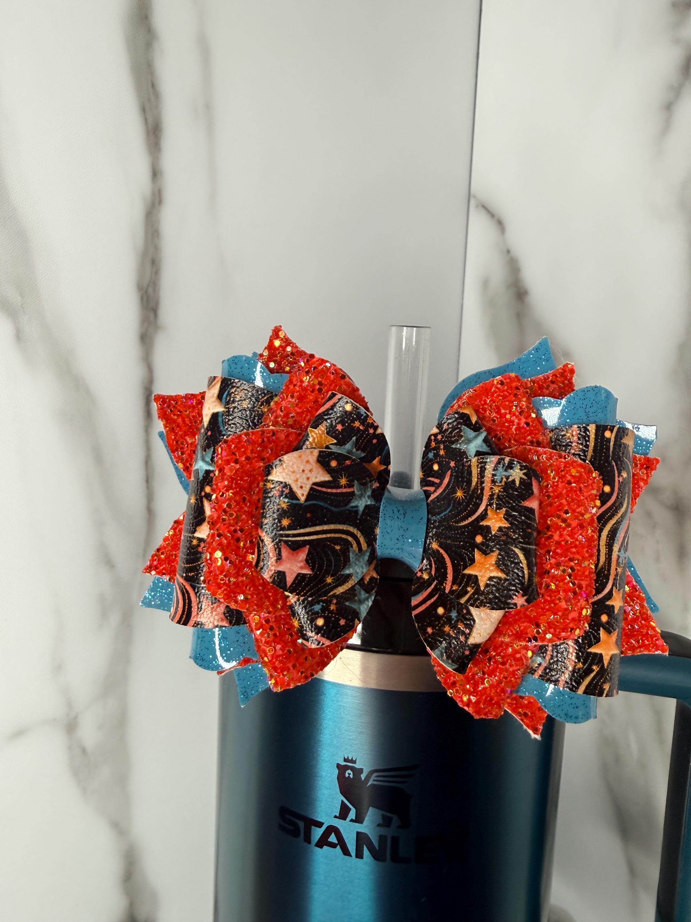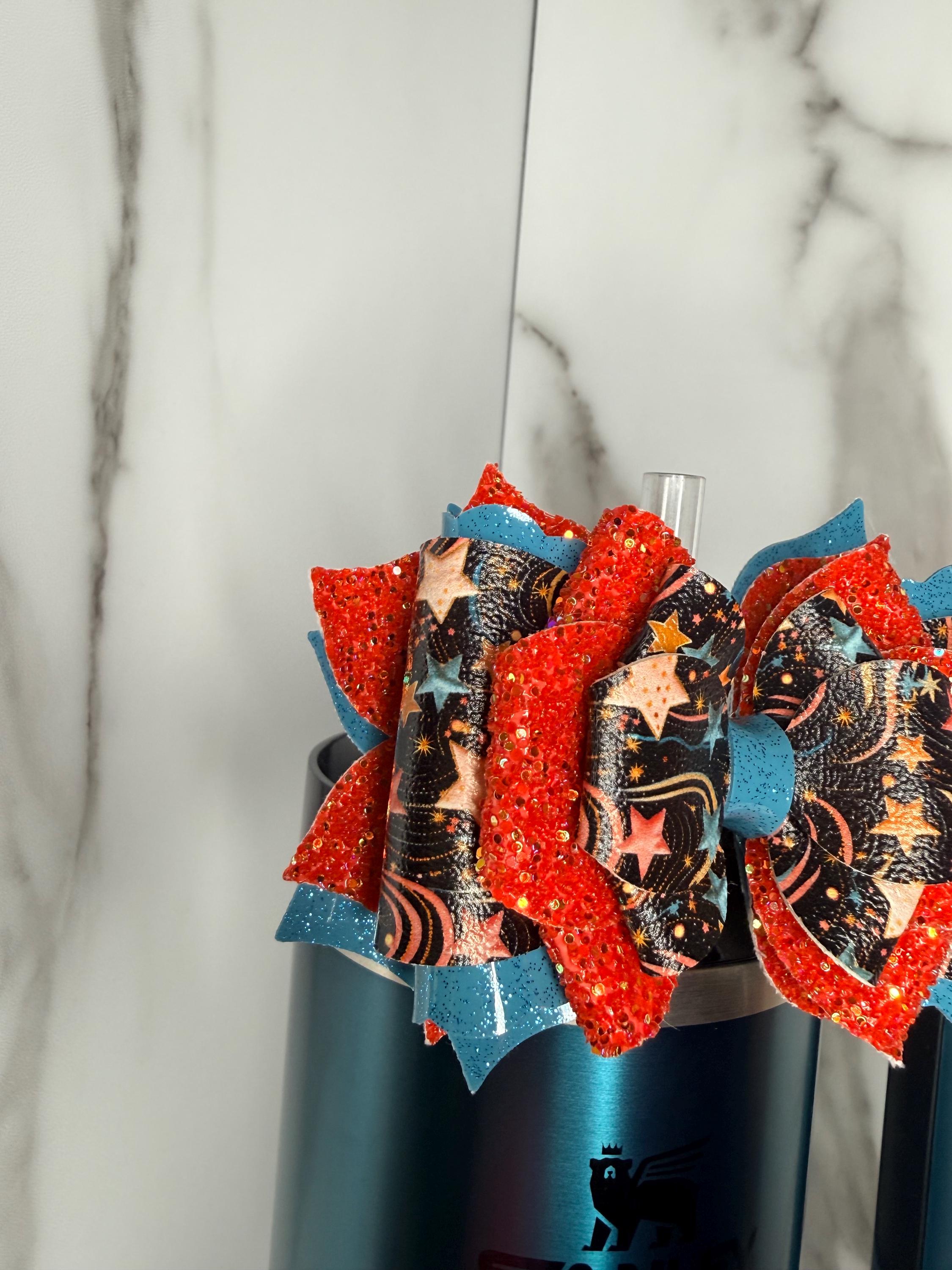 Gold stars Stanley Tumbler Bow | Star Cup Bow | Red/orange gold teal Stanley Accessory