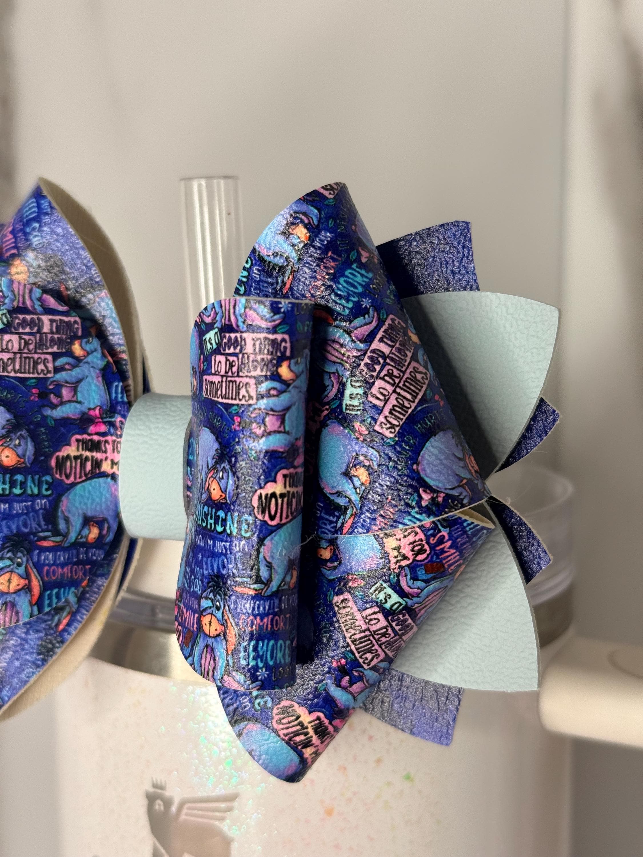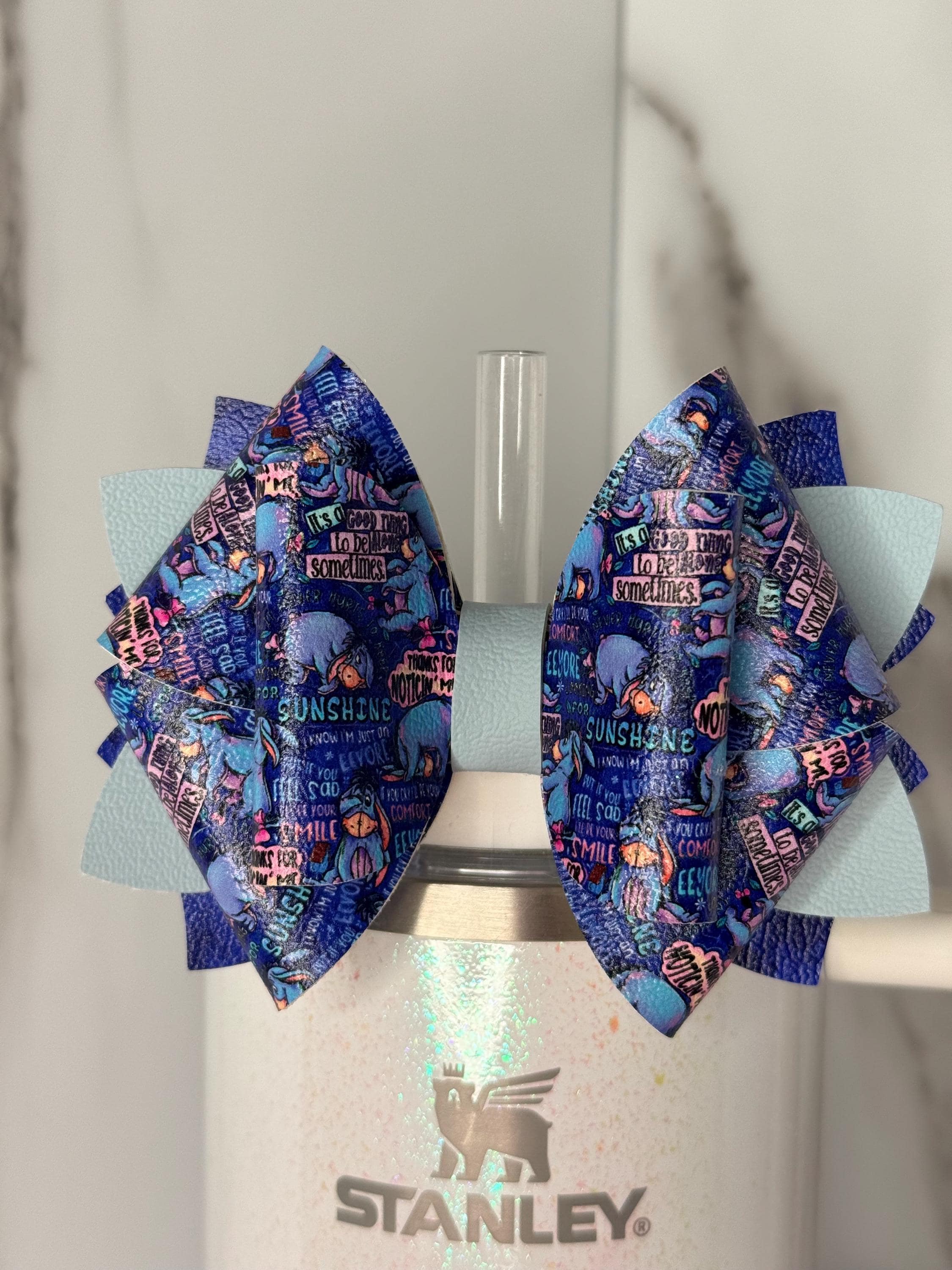 Brighten your day with this inspirational sunshine tumbler bow! inspired by our favorite donkey, comfort quotes, and layered glitter and blue tones. A cute mental health and encouragement accessory for your tumbler! 📦 Listing is for bow only, cup and straw not included. Ready to ship.