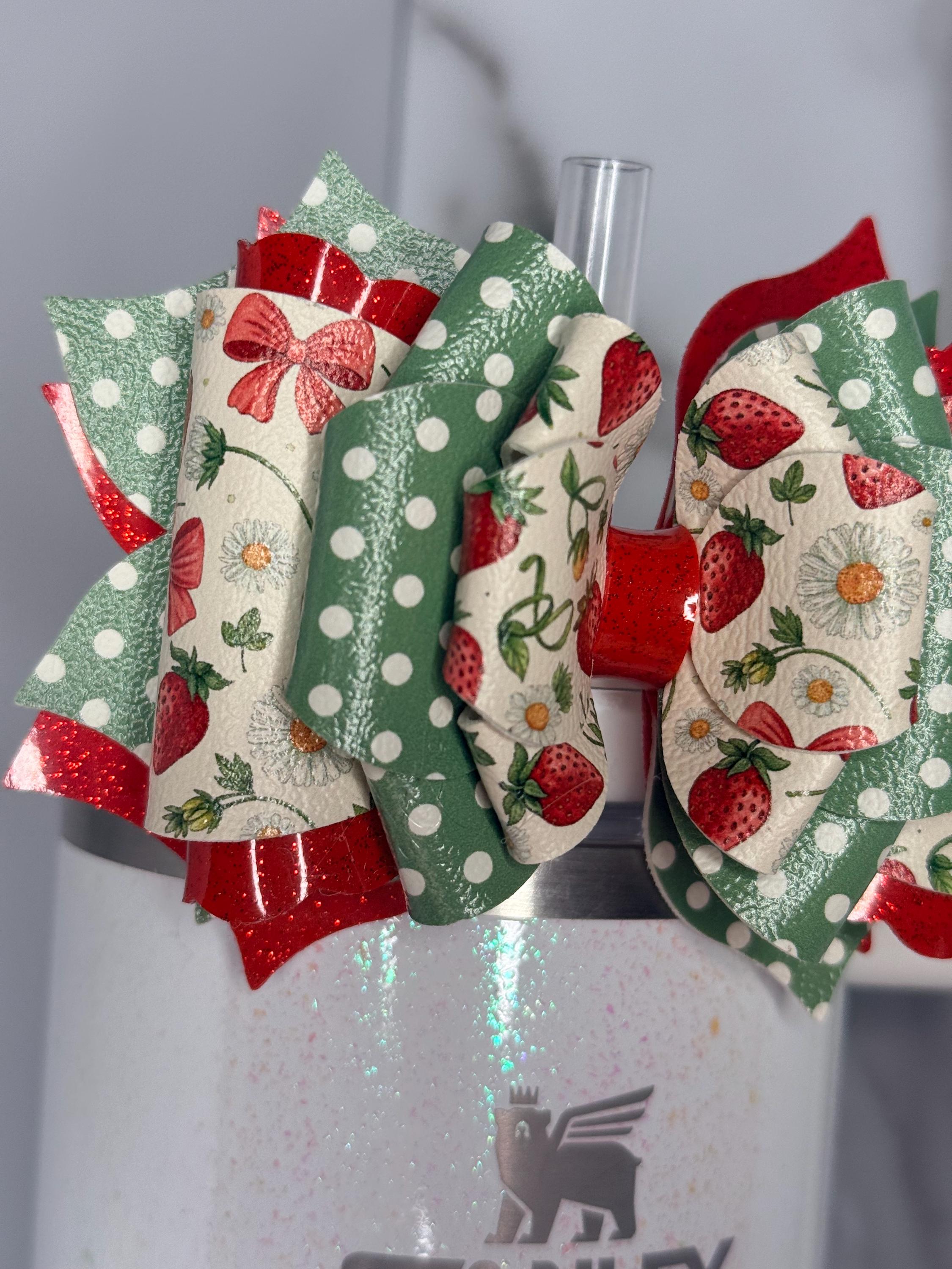 This adorable cottagecore strawberry tumbler bow is perfect for summer! Features strawberries, daisies, bows, and green polka-dot layers. A must-have for berry lovers, market season, and picnic vibes! Fits most straw tumblers. 📦 Listing is for bow only, cup and straw not included. Ready to ship.
