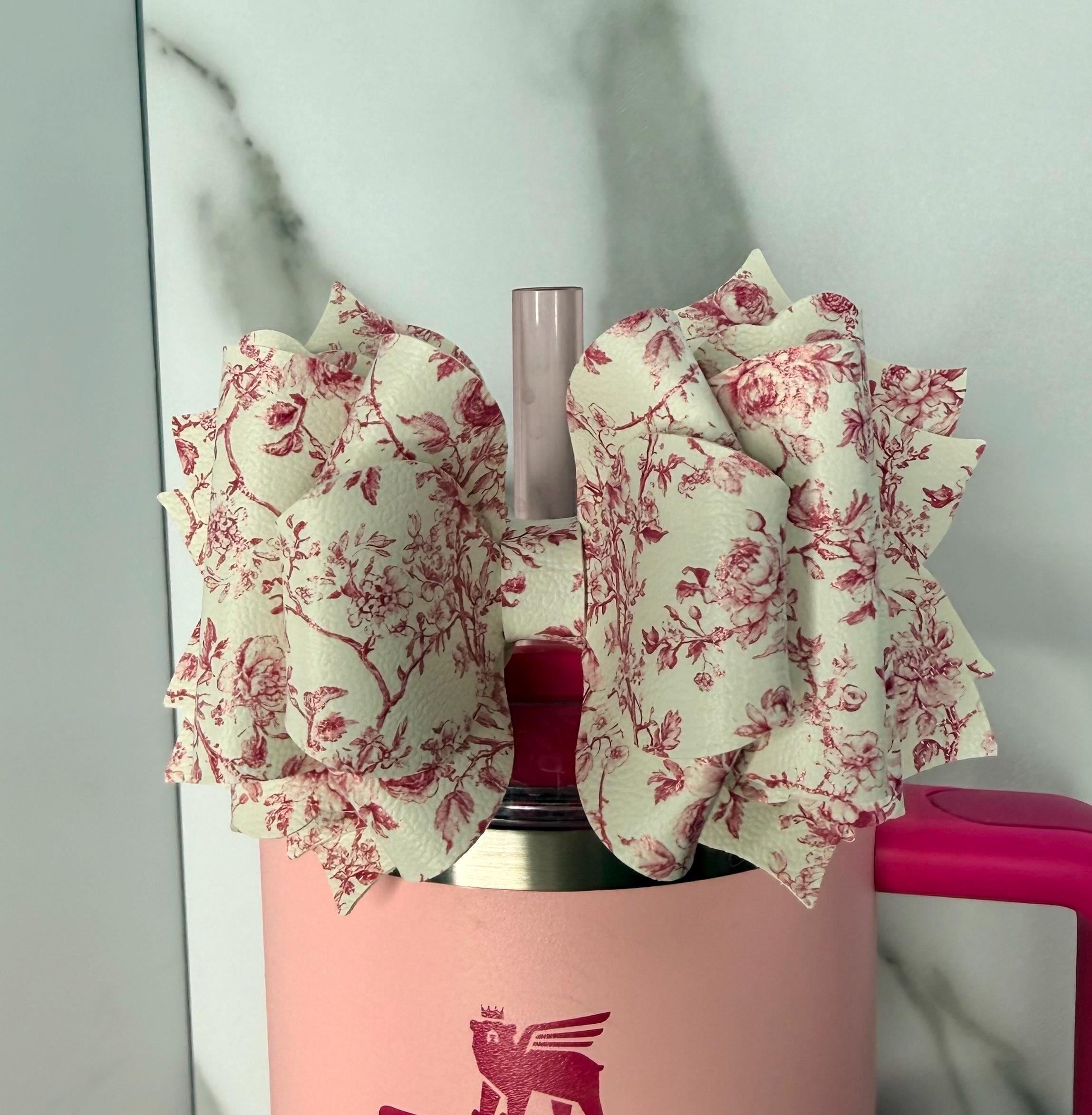Bring soft cottagecore charm to your tumbler! This pink toile tumbler handle bow features delicate vintage floral patterns in a romantic pastel style. Designed to fit Stanley and most handled tumblers, this bow adds a classy feminine touch to your everyday cup.